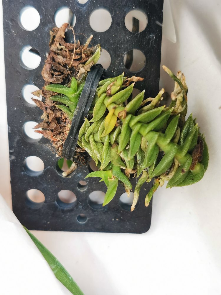 @ЛюдаМила, понятно, конечно, что получено совсем не то... но они не малышня, взрослые уже, просто по 1 розетке. И делать с ними ничего особого не надо ни сейчас, ни в дальнейшем. Сейчас нужно их просто отпоить, поставив корнями в воду (не доходя до основания розетки). А потом посадить в глиняные горшочки маленького диаметра. На дно пару кусочков крупной коры или пенопласта, сверху поставить раатение вот все, как на фото показали, и с краев засыпать крупными кучочками коры. Серединку засыпать не надо, оставить без субстрата. Все. Поливать 1-2 раза в неделю проливом по краю горшка, пока не укоренятся. Дальше можно будет замачивать. По освещению -как для дендробиумов и каттлей - яркое.