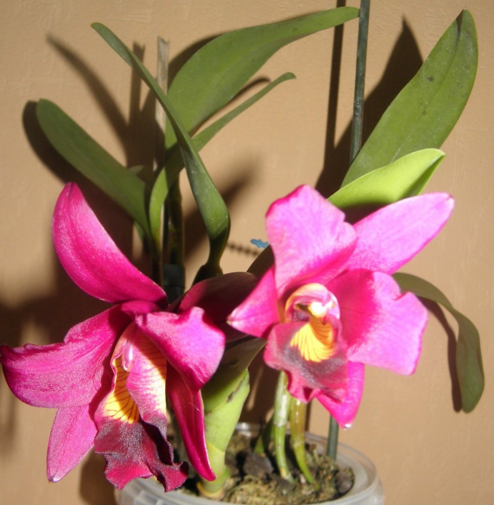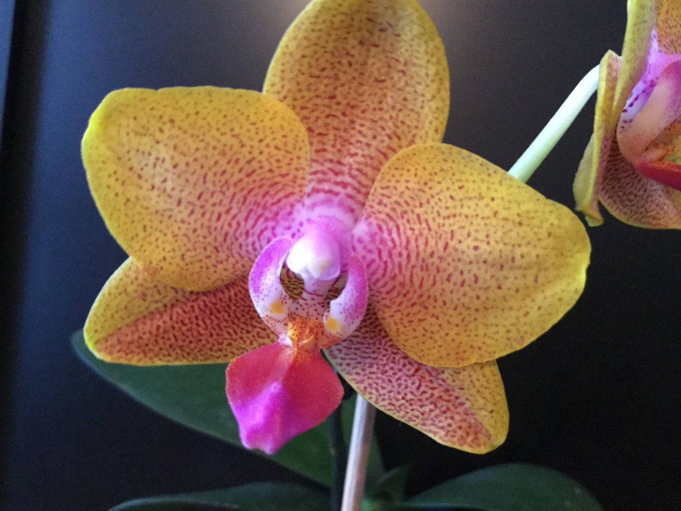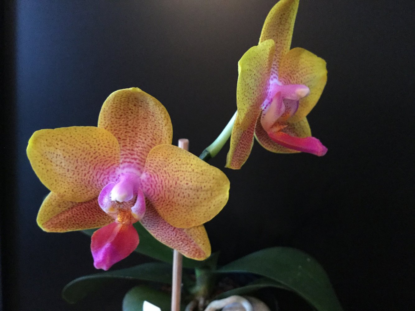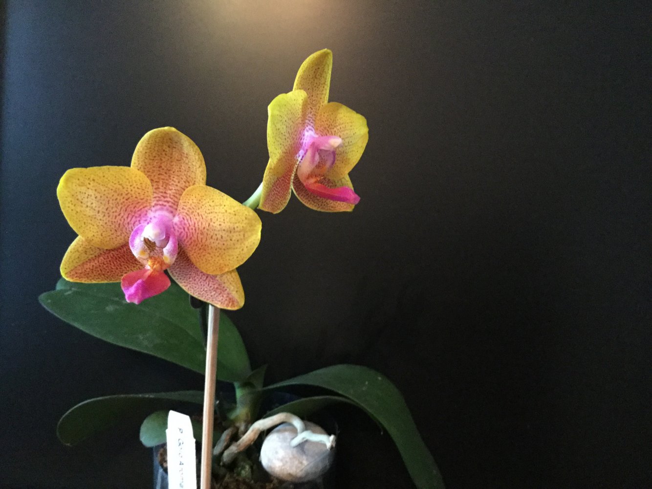 P. Gold Aroma Sara (ex32960), получен год назад, первое цветение, цветонос около 10 см, два цветочка размером чуть больше 5 см, пахнет специями, с горчинкой.