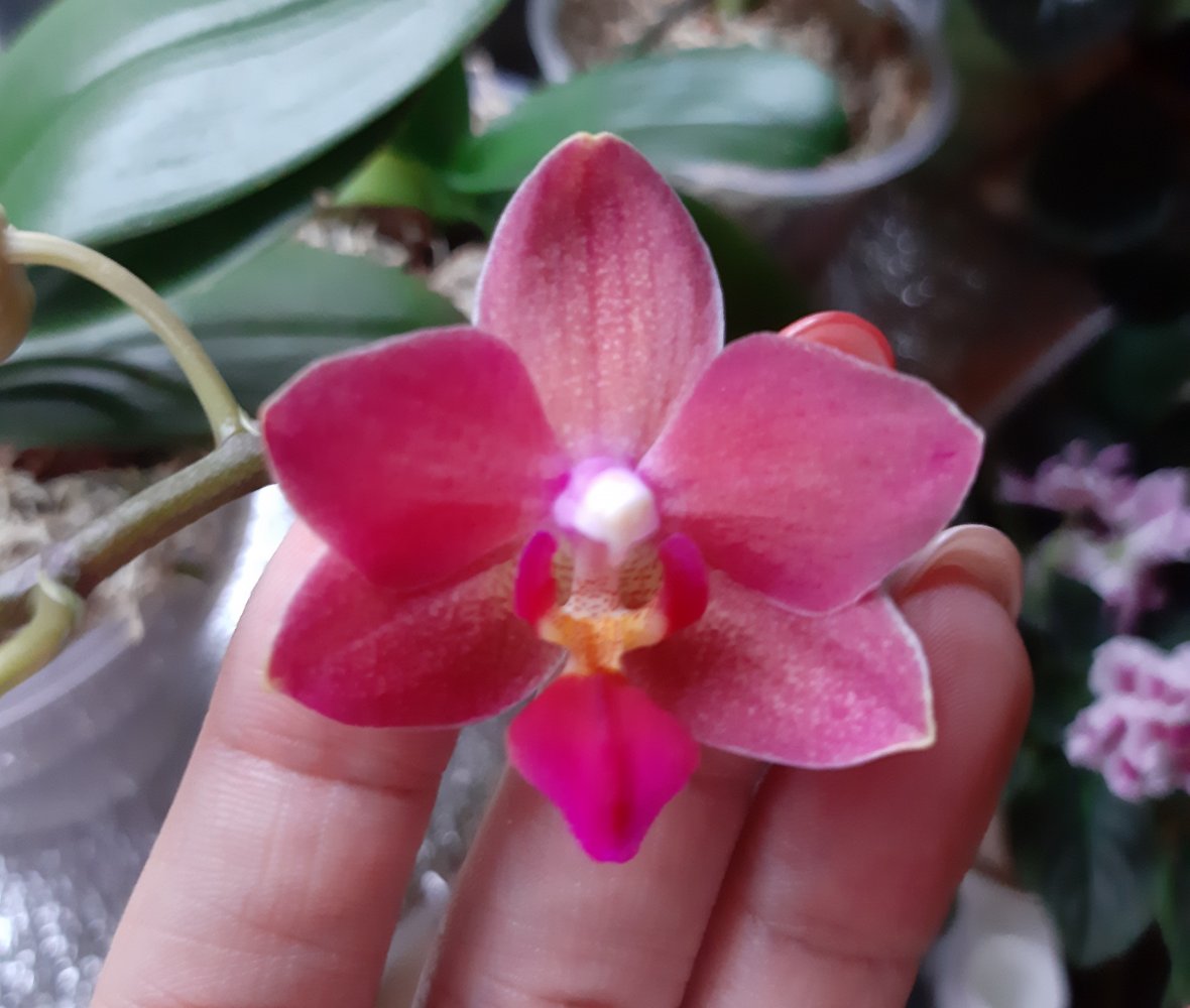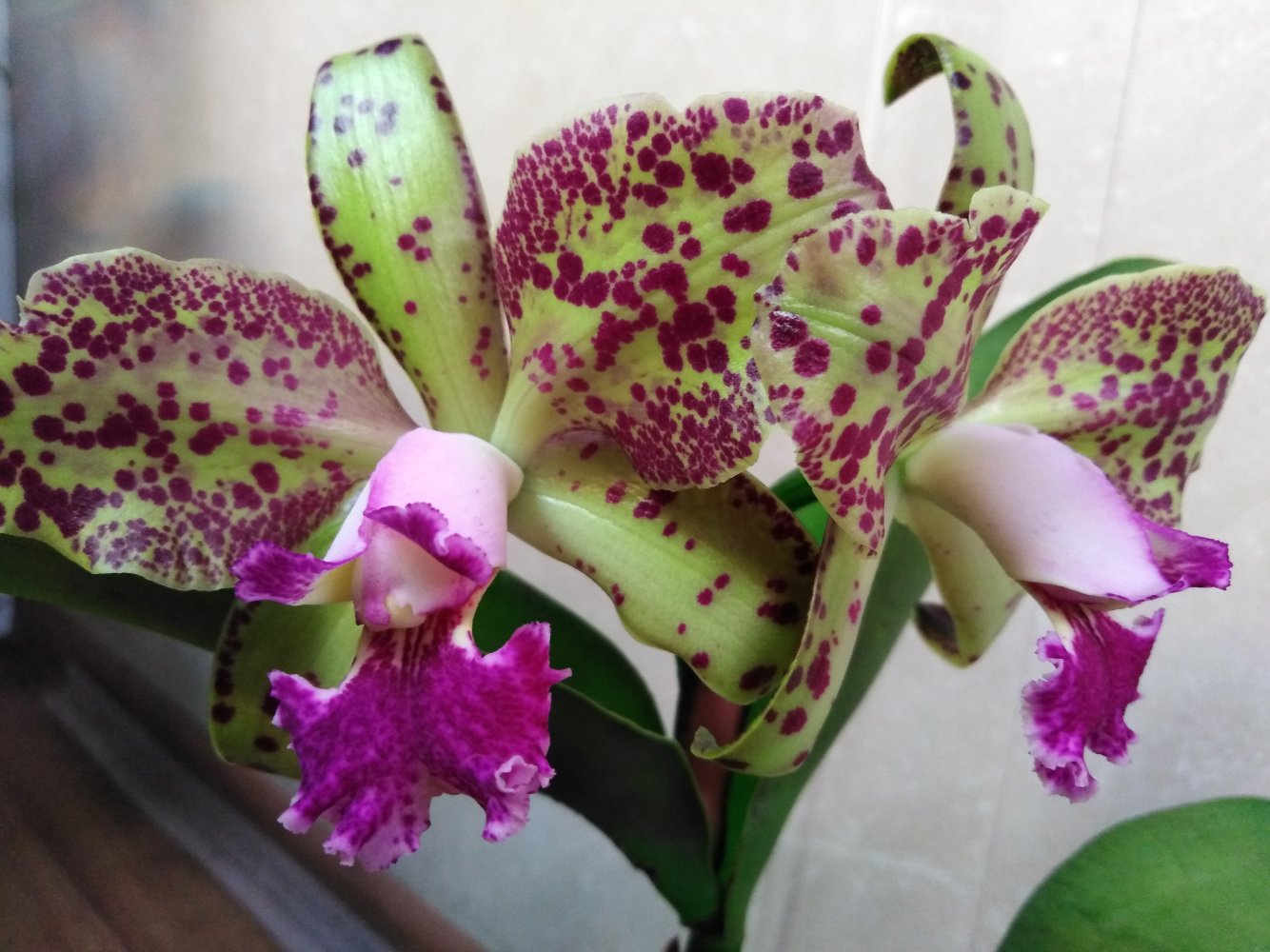 Мой bao leopard, полученный этим летом процвел вот так😂 с вашим цветением даже рядом не стоял и конопушек нет от слова совмем. Просто непонятная мини орхидея. Цвет на фото передан точно. Собрали все что было в одну партию)