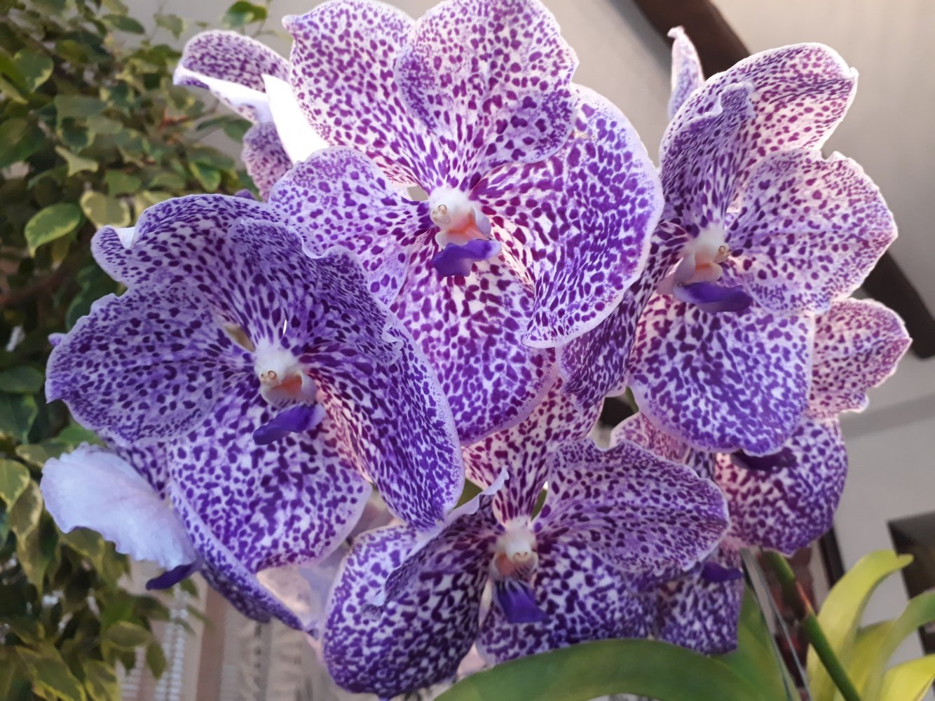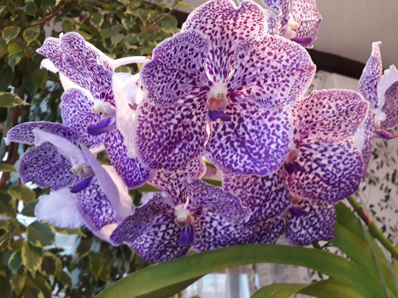Цветет на два цветоноса asc. Suksamran Spots/v. Dr. Anek. Приобретала у нашей форумчанки, Чижика. У меня зацвела первый раз, и сразу двумя цветоносами. Сейчас раскрыты все 14 цветов ( по 7 на каждом). Цветы огромны-13,5 см по диагонали. Красавица, не описать словами! Жаль, что все цветочки сразу в кадр никак не попадают.20201107_104855.jpg20201107_104848.jpg