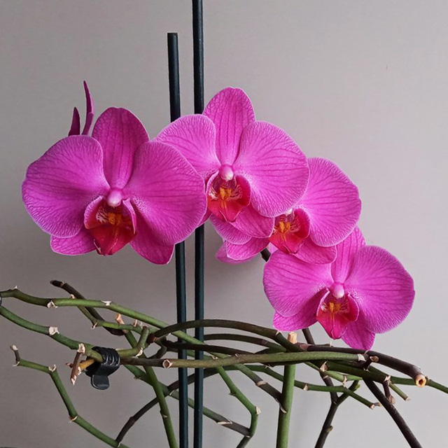 Phalaenopsis Alexis Fiber предстала в другом свете, когда после прошлых цветений ветвящиеся цветоносы собрали в пучки. Постигая древнее искусство и сами того не подозревая, хозяева сотворили икебану. Вспоминается только что выдуманная японская пословица: "Река времени обнажит прекрасное, ищи кувшинки на поверхности воды".