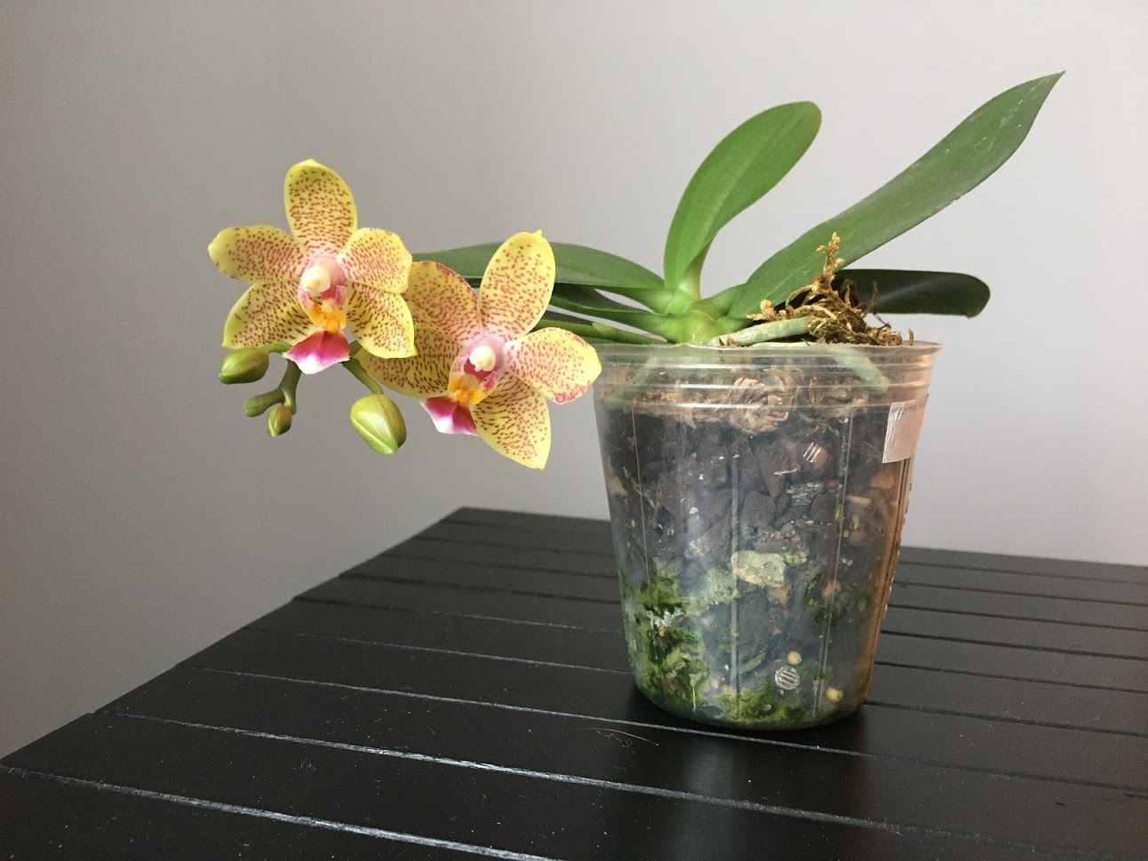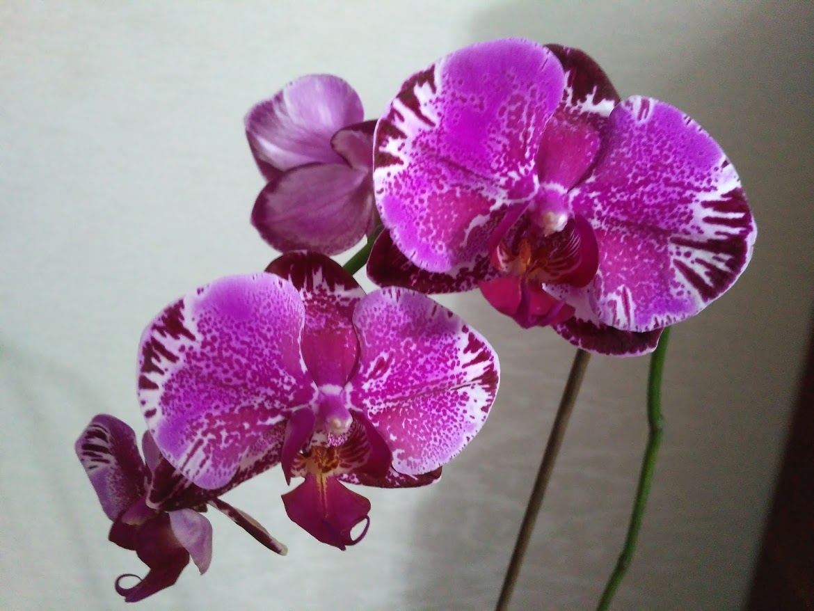 Спустя почти два года Phalaenopsis KS Super Zebra наконец мне покорилась. Орхидея прибыла с цветоносом, спустя две недели начала растить другой, но отсушила бутоны. В течение следующих полутора лет эта капризуля вырастила ещё три цветоноса и продолжала сушить на них бутоны. В итоге своенравная и дикая Зебра расцвела на втором цветоносе, выращенном у меня после прибытия. Ну да ладно, за уникальный рисунок, необычный мыльный аромат и помпоны на губах можно всё простить!