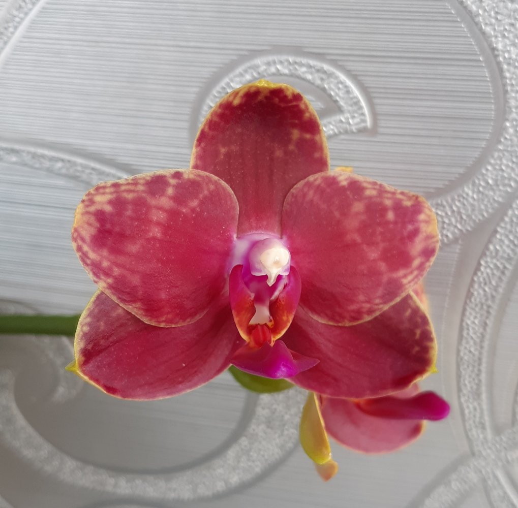 Ручной монстр Phalaenopsis pulcherrima 4N после прошлого цветения отдохнула полгода и выпустила новый цветонос. Через два месяца на нём стали распускаться цветки. Петалии тетраплоидной пульчерримы украшены неоново-розовыми рюшами и контрастными рыжими всполохами, что делает ещё более уникальным этого необычного зверя.