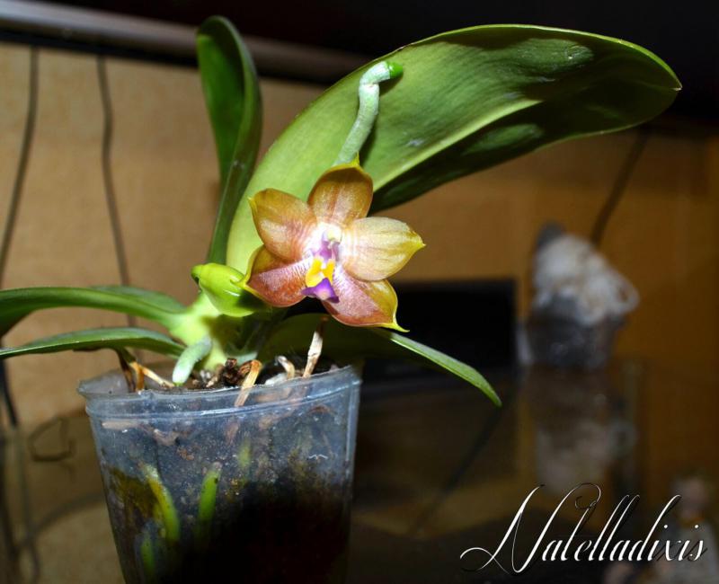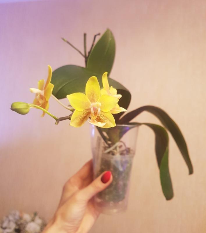 Получила своё растение в декабре 2019, со сломанным цветоносом но с боковым пробегом с маленькими бутонами, из которых распустился один цветок.