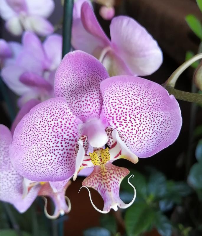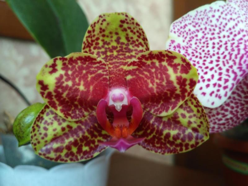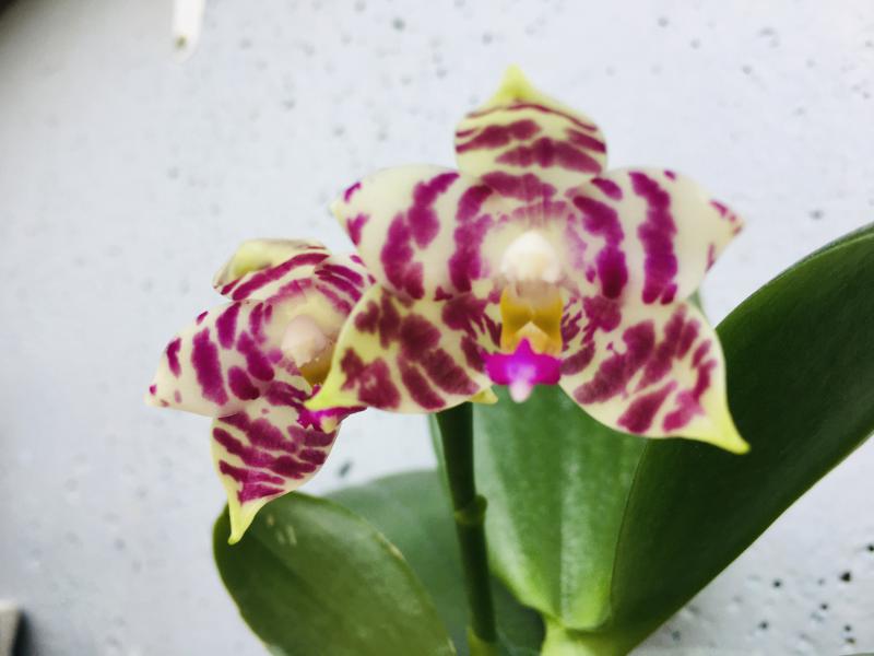 Цветёт фаленопсис под коммерческим названием Manhattan. Они у всех настолько разные :girl_expect: Своим очень довольна. Как по мне, так взял всё самое лучшее от прародителей: пятнистость листьев, форма цветка, ну а губа вообще выше всех похвал.