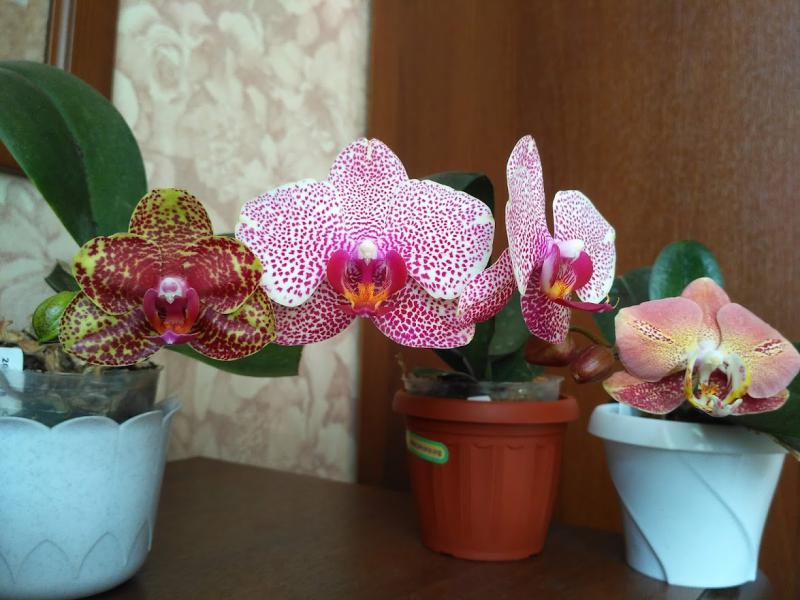 (Chingher Buddha x Mituo Sun ) x Ching Ruy's Beauty,Shining. Phal LECO Fantastic. 2.5-3.5, заказ 30323, доставлен в октябре.Phal I-Hsin Sesame ,exclusive29440.доставлен в августе.У всех первое цветение.