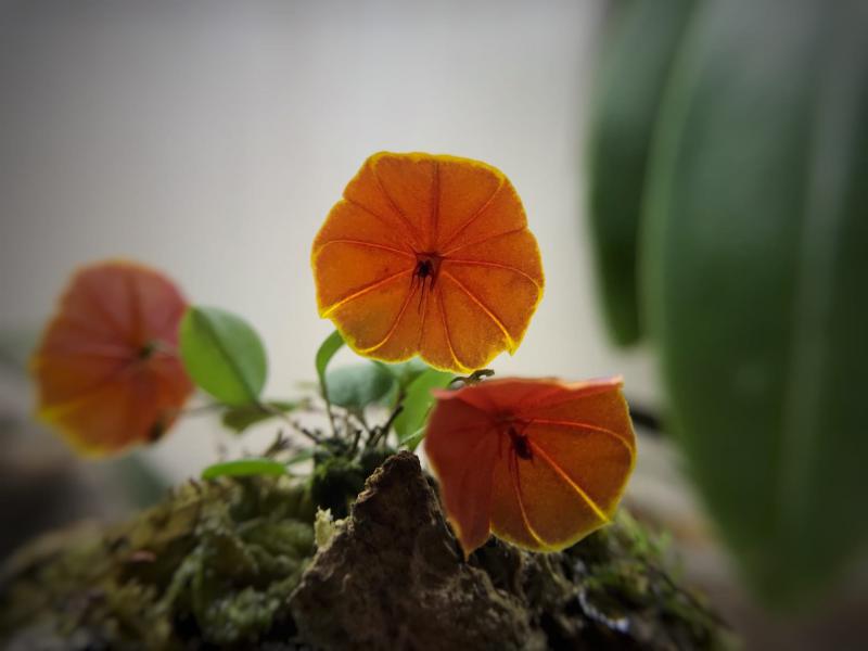 Masdevalia mix оранж у меня живет в ящике,на нижнем ярусе, влажность высокая, цветонос длинный, не получается более менее целиком сделать фото, так что только цветок.