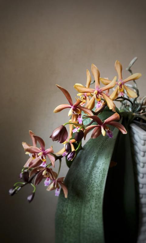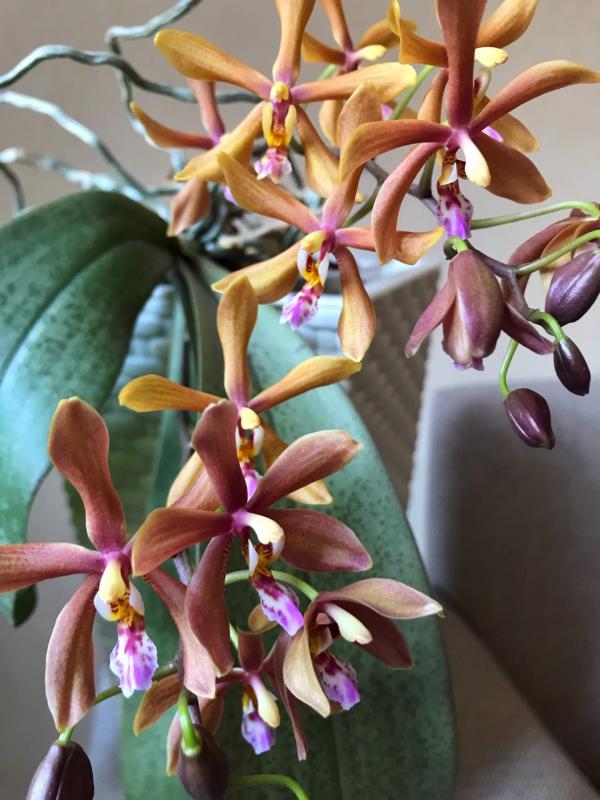 Увы, это возможно! Вот цветение моего гибрида Phal. Zheng min Anaconda * Phal. Gigantea, тоже ждала штрихи, но не уродилось! :girl_wink: Ничего, растение прижилось у меня и покорило обильным цветением!