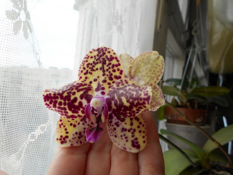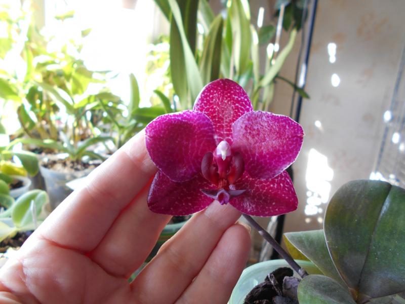 в размахе листьев около 3 см, цветы - неполный 1 см. Спасибо)Жалко, размер непонятен.