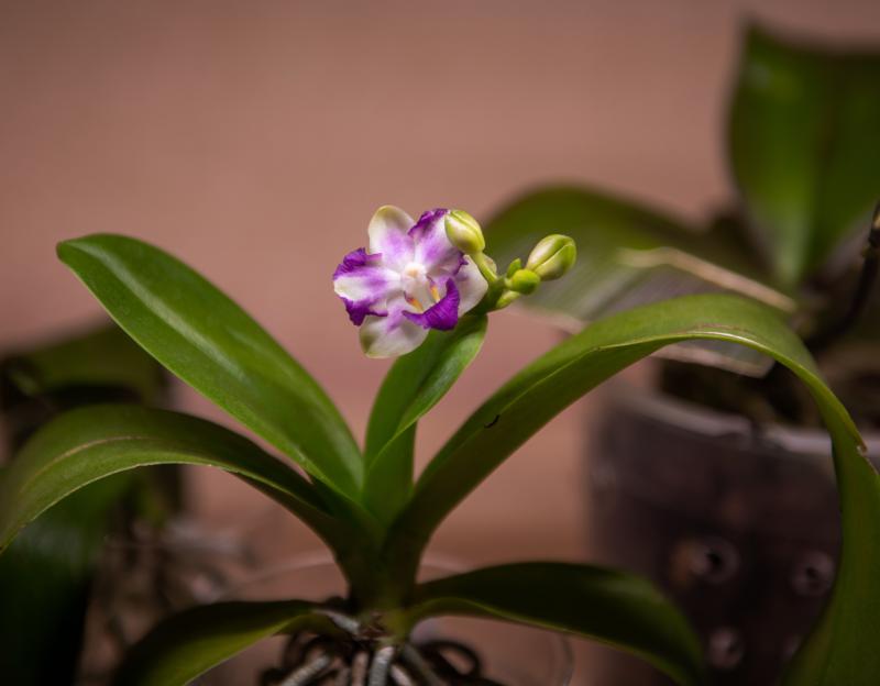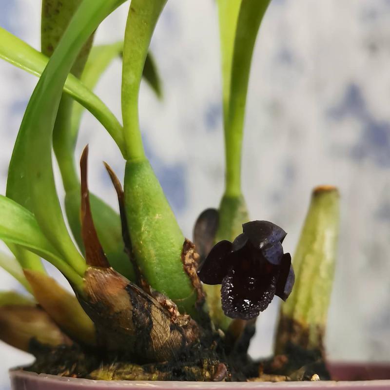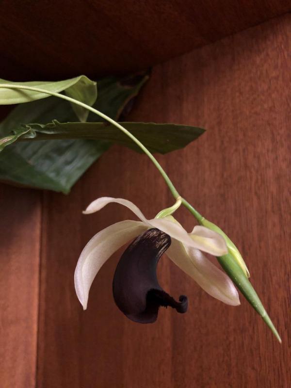 Моя любовь с первого взгляда, Coel. usitana. Цветок прекрасен, кажется, что он выдут из стекла бежево-белого и цвета горького шоколада. Но сделать нормально фото нереально, цветок не только смотрит вниз, но и растет "вверх ногами".