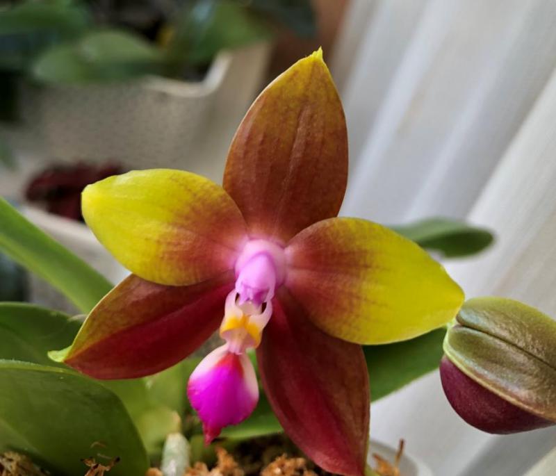 Очередное цветение P.LD Sun Dragon Snake Scale, цветок 6см, очень слабый травянистый запах. Мой любимец.