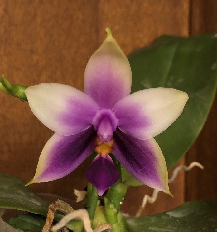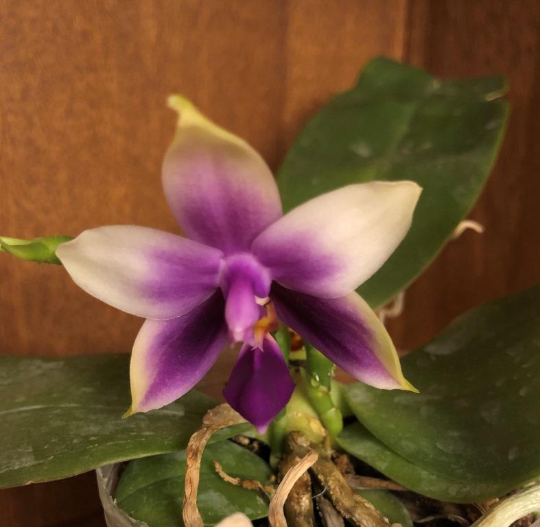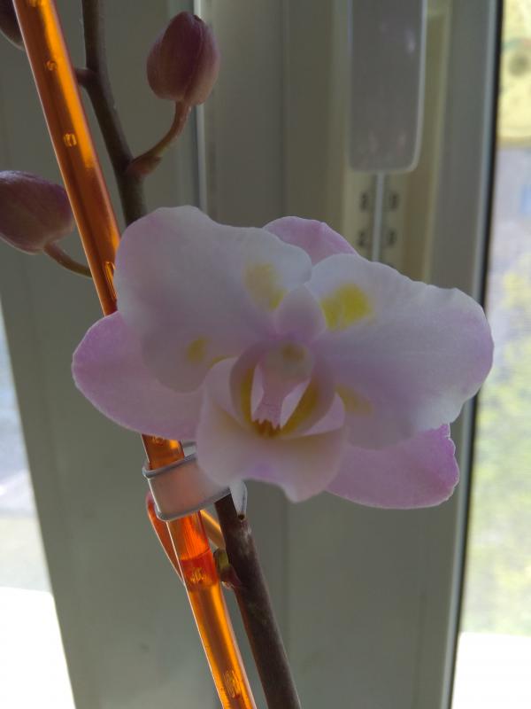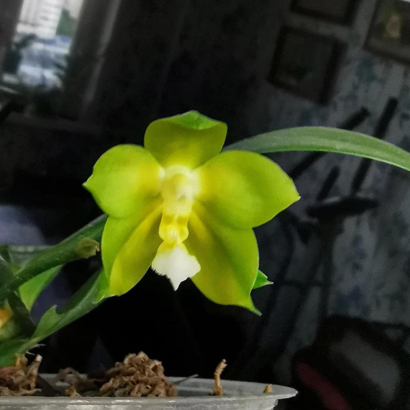 P. Yaphon Sir x P. Mituo Sun. Получен так давно, что уж и не помню, откуда. По-моему, еще из первых форумных заказов. Пришел хорошим 2,5, но никак не хотел цвести. И вот наконец зацвел. Цветок бледноватый, ожидала цветение интереснее. Аромат вроде есть, если засунуть нос, но может, мне кажется...
