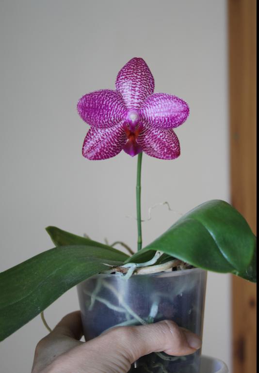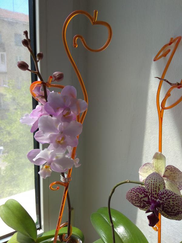 И еще один из гибридов Петера, один Zheng Min-ов, заказанных давно на форуме. Пришел с той поставкой от Петера, когда многие растения погибли от бактериалки. Этот единственный выкарабкался и наконец зацвел. К сожалению, файл с названием был утерян, варианты либо Phal.Zheng Min Archaeopteryx 'Peter #6' x Phal.Leucorrhoda, либо Phal.Zheng Min Warrior. Чем-то похож на Tzu Chiang Balm, цветочки мелковатые, но зато ароматный очень. Да, новые листья в крапушку, свойсвенную Mituo Sun.