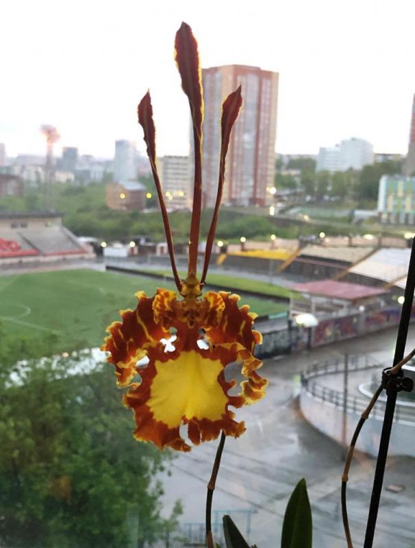 Вариант цветения P. Miro Super Star X Lyndon Gold Ring из спецпредложения с Охоты 18г. Цветок 4,2 см по петалиям, аромат в течение всего дня, цвет передан верно. Цветение первое, дома выпустил 3 цветоноса. Пока не могу понять, нравится или нет, надеюсь, форма со временем изменится в лучшую сторону.