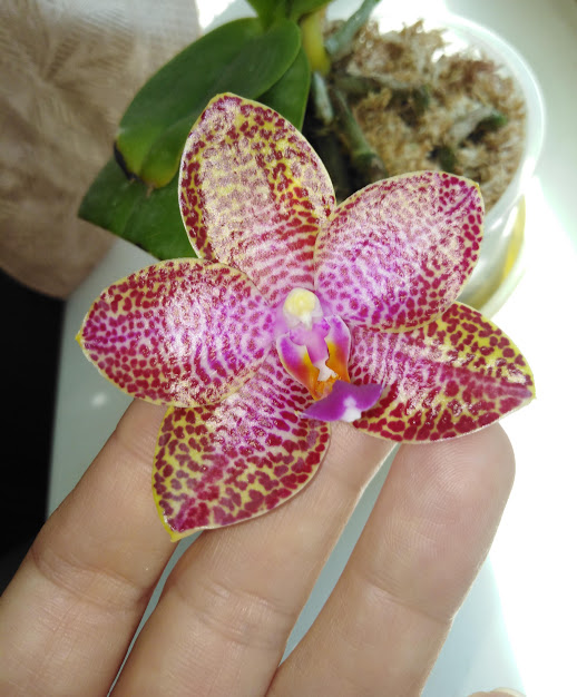 Был мною обменен на Tabasco Tex (о причинах обмена я писала). В апреле один лист подгорел на солнце - приехал из затенённой квартиры на мои южные окна. Сейчас к солнцу адаптировался, чувствует себя неплохо.