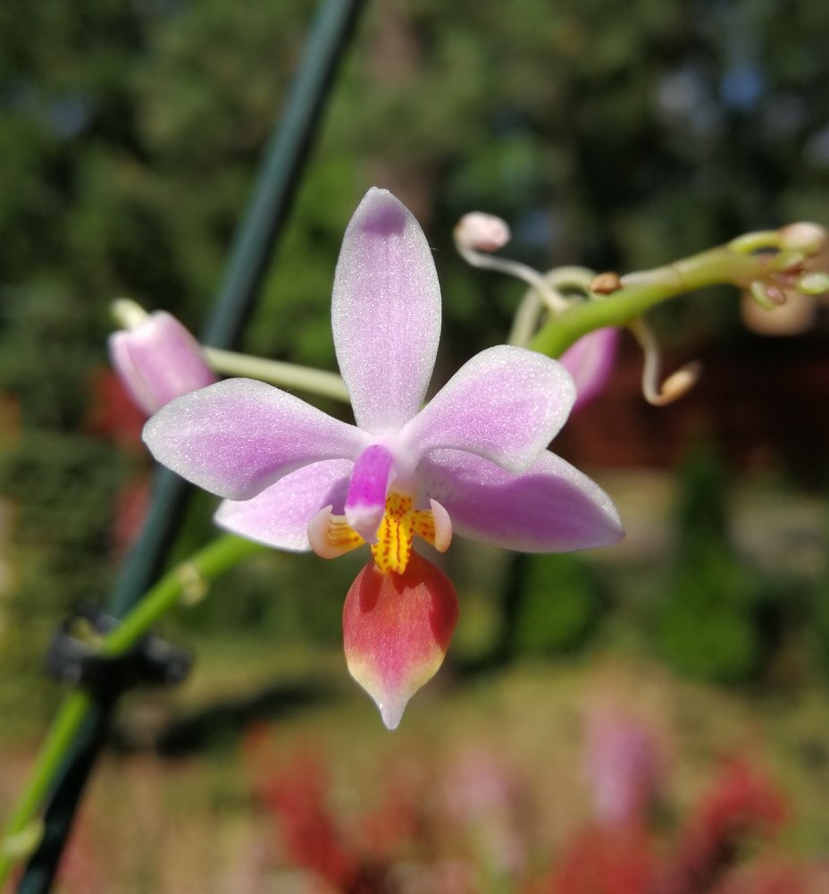 Цветоносы доращивает, расстояние между цветами небольшое. Срок жизни цветка около двух месяцев. У меня держит до трёх цветочков одновременно.