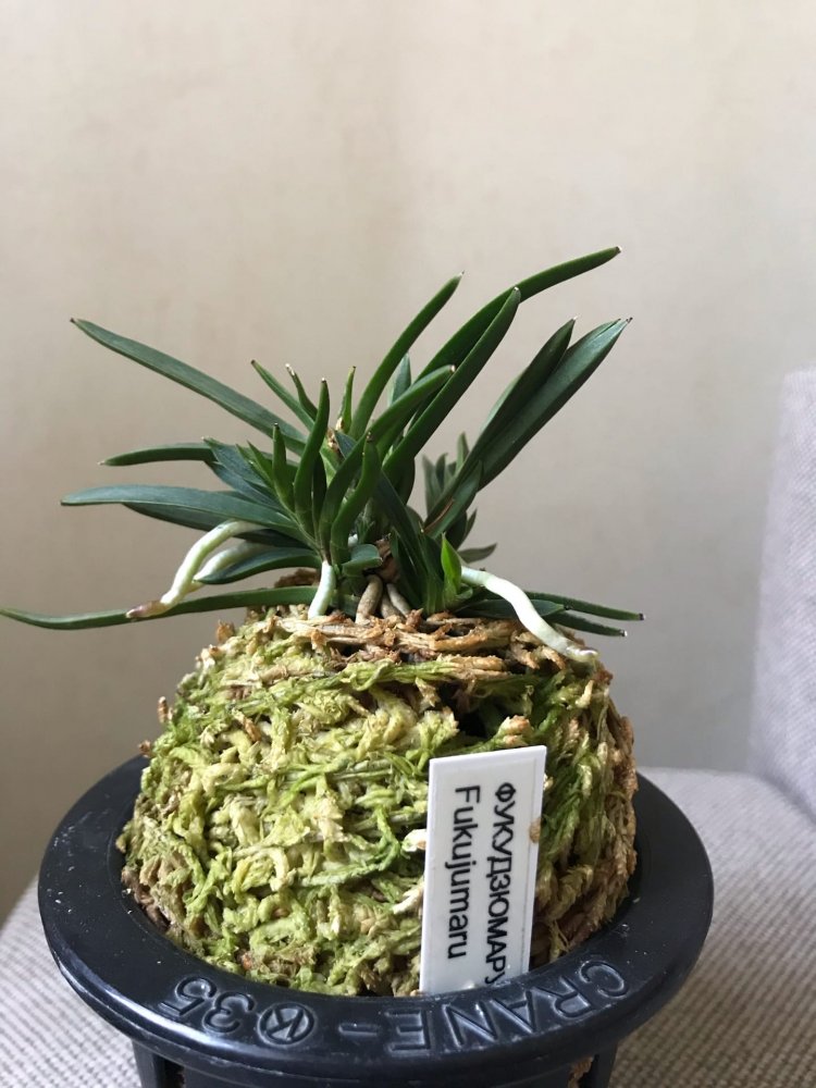 5. Neofinetia falcata Fukujumaru, миниатюрный вид с игольчатыми листьями, развитая, хорошие корни, много розеток. 1800