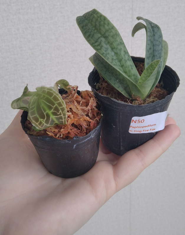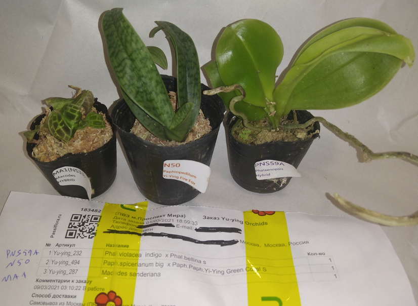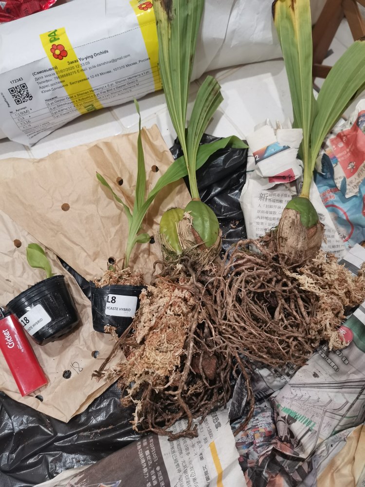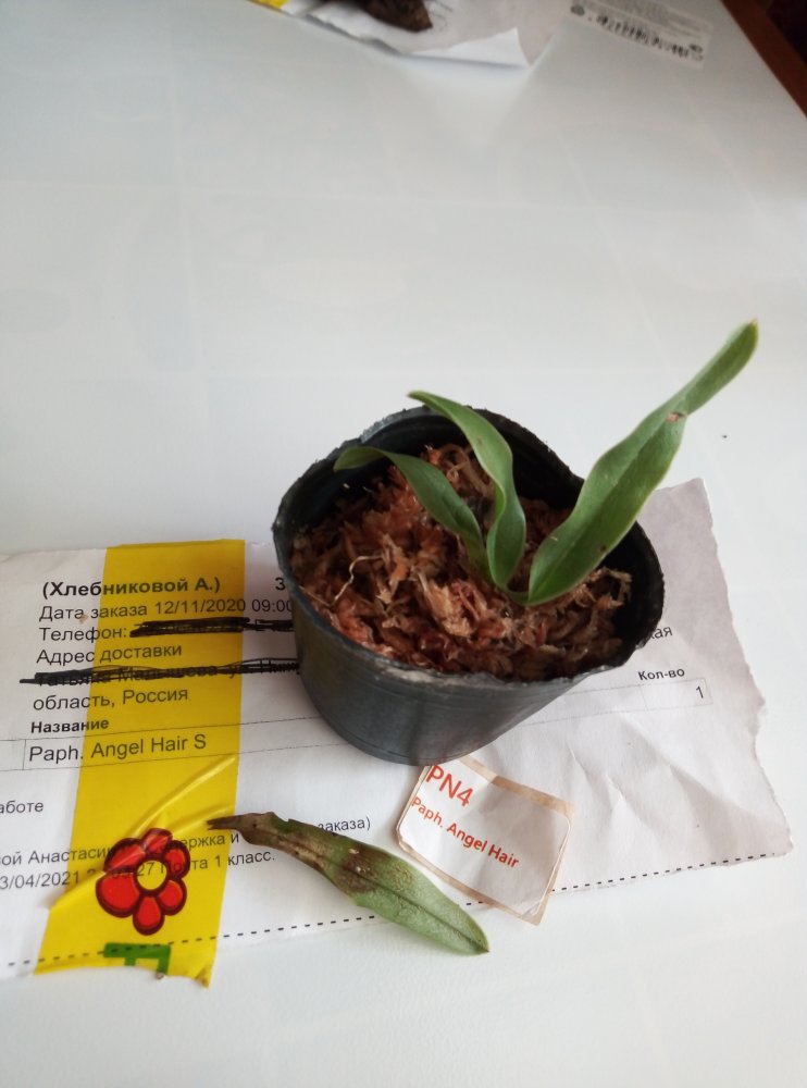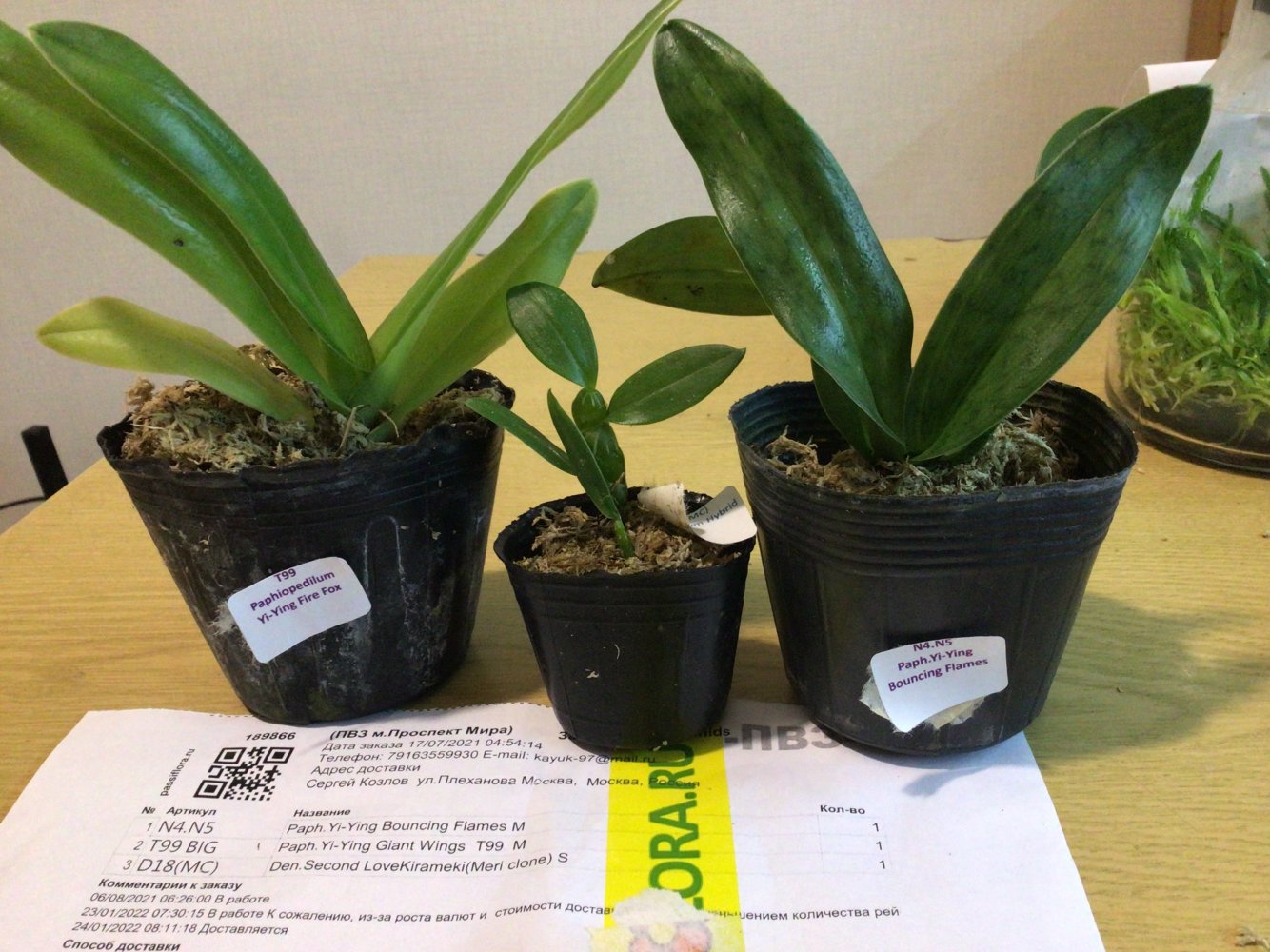 С пафом непонятно. Замена? На упаковке поставщика другой сорт, Paph Yu-Ying Fire Fox. Но судя по пёстрым листьям это не Fire Fox, а тот кросс что я заказала. Спрошу в обсуждении.