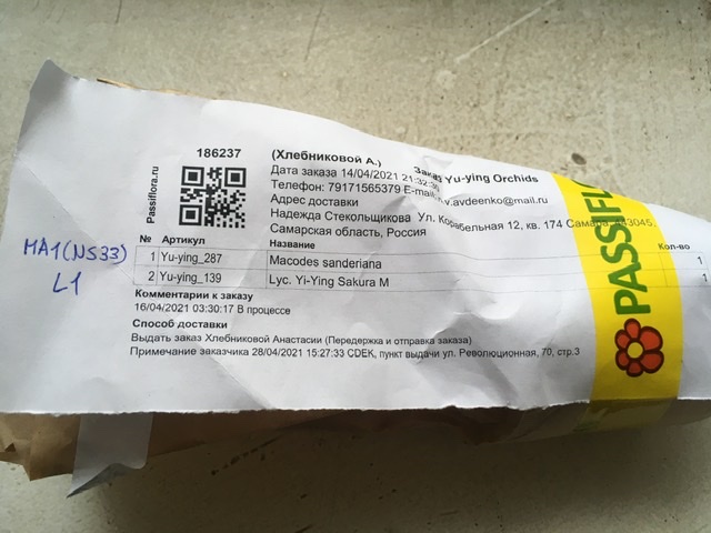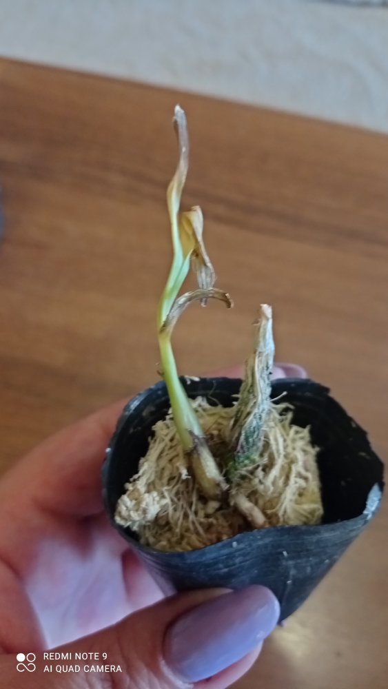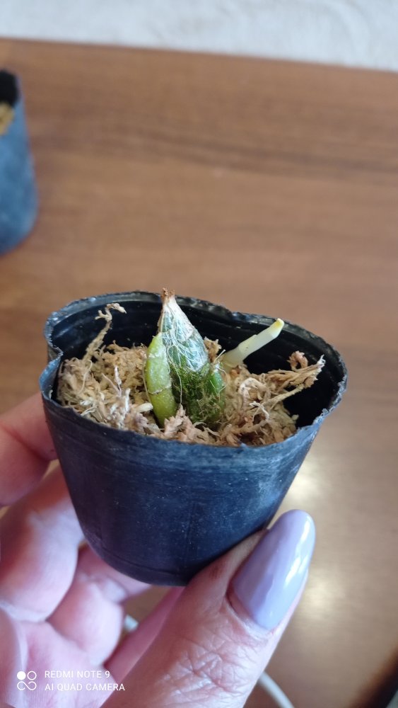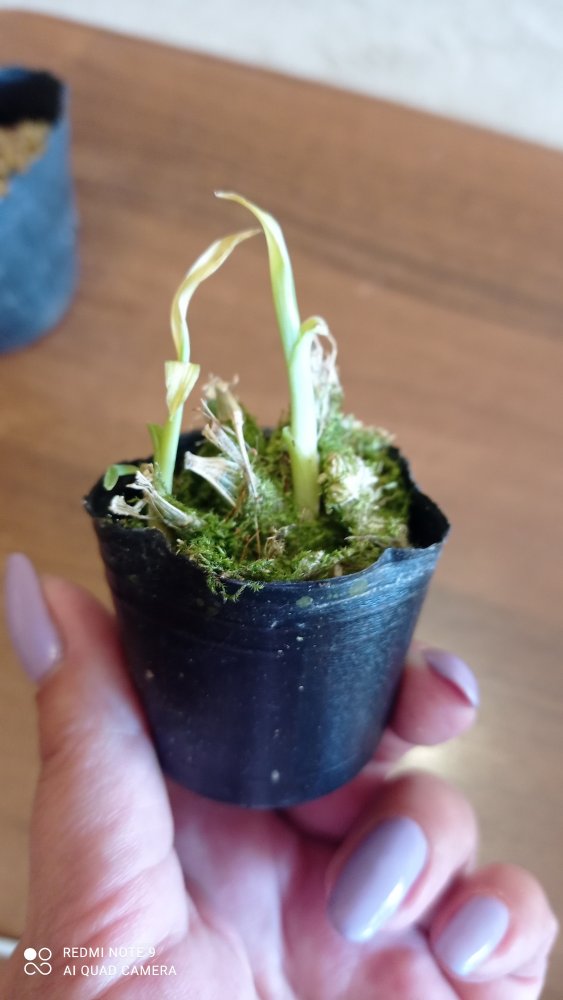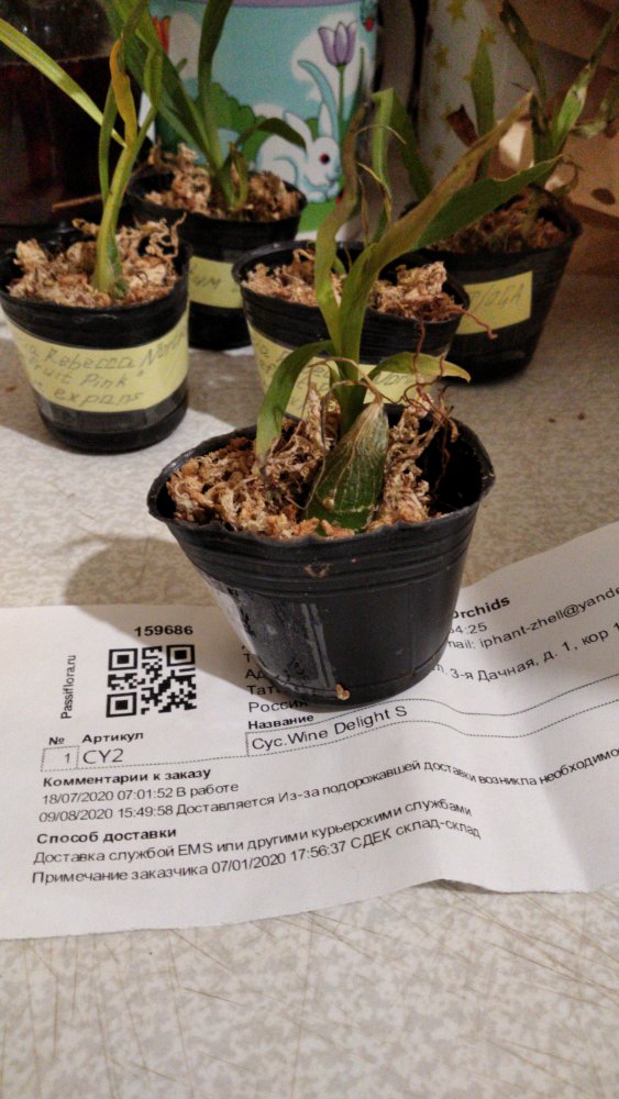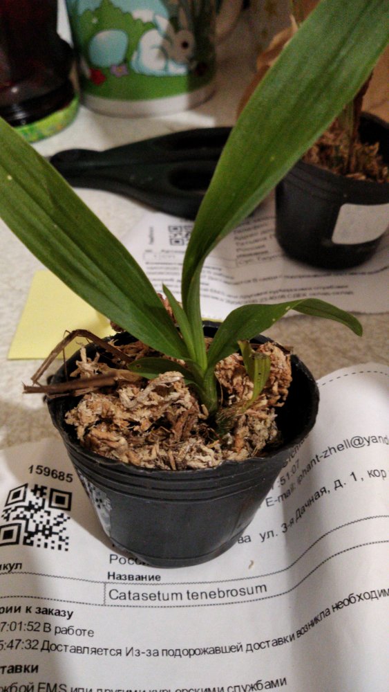 С пафом непонятно. Замена? На упаковке поставщика другой сорт, Paph Yu-Ying Fire Fox. Но судя по пёстрым листьям это не Fire Fox, а тот кросс что я заказала. Спрошу в обсуждении.
