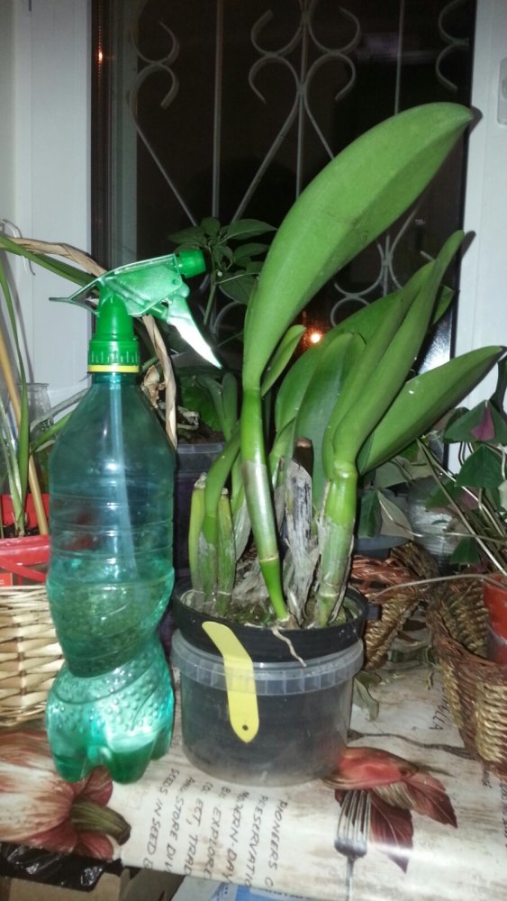 У меня, к сожалению, нет опыта по ее выращиванию. Но вот по размерам могу сказать про свою, которая недавно пришла из спецпредложения 37108 Каттлейное!, правда, без приставк Tian Mu. В названии спеца был указан размер 4.5. Думаю, что это он и есть, так как очень большая. Есть что-то похожее на цветонос и чехол. Так что в таком размере она цветет. Бутылка литровая.