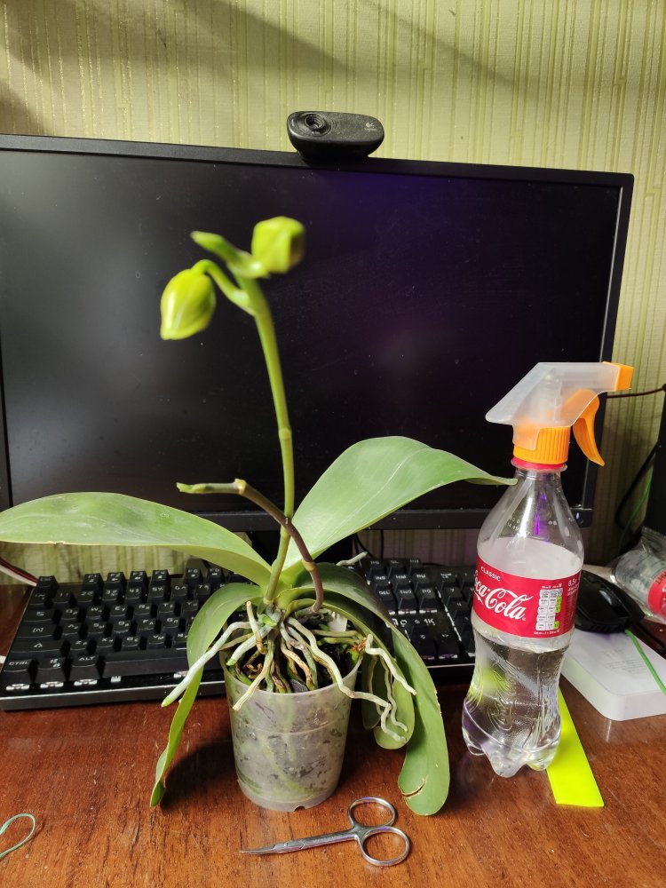 2. Фаленопсис Mituo King x Ld's bear king. Взрослое растение с цветоносом. 1500 р.