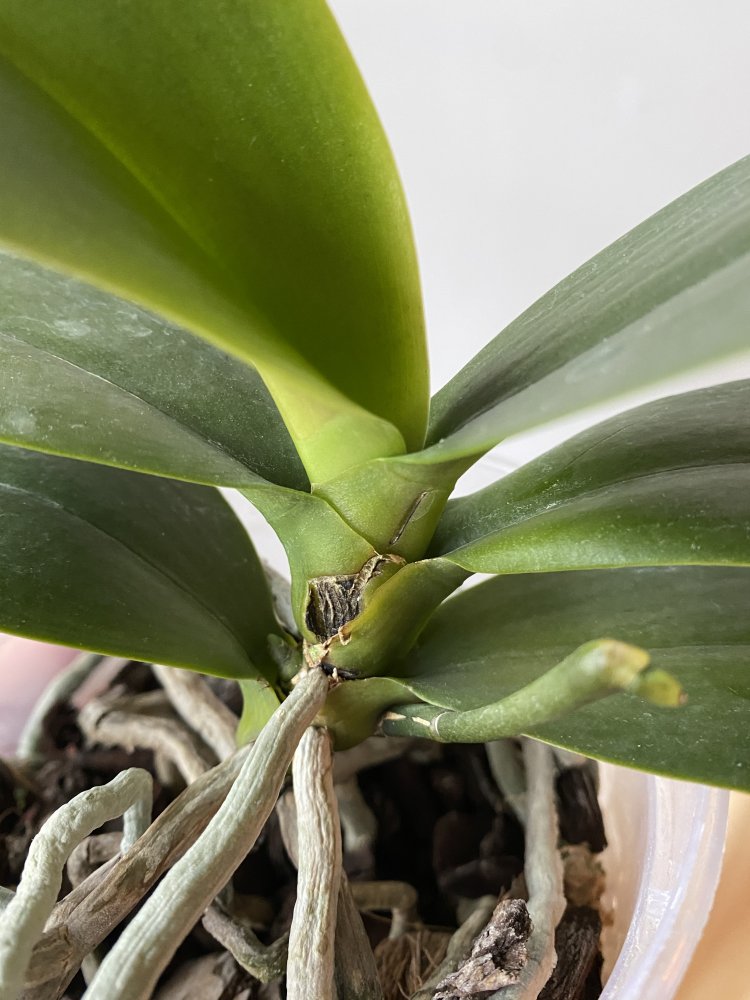 Давно адаптированное, с 2-мя цветоносами, отличная корневая. Было сомнительное потемнение на стволе - обрезала, все в порядке уже давно.