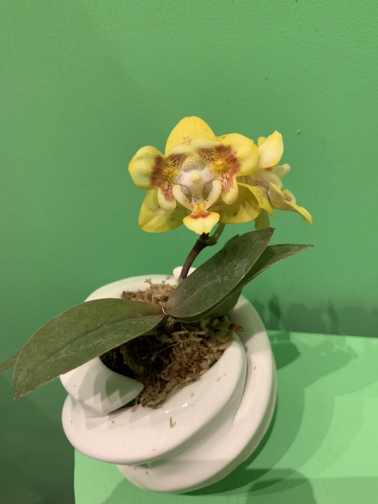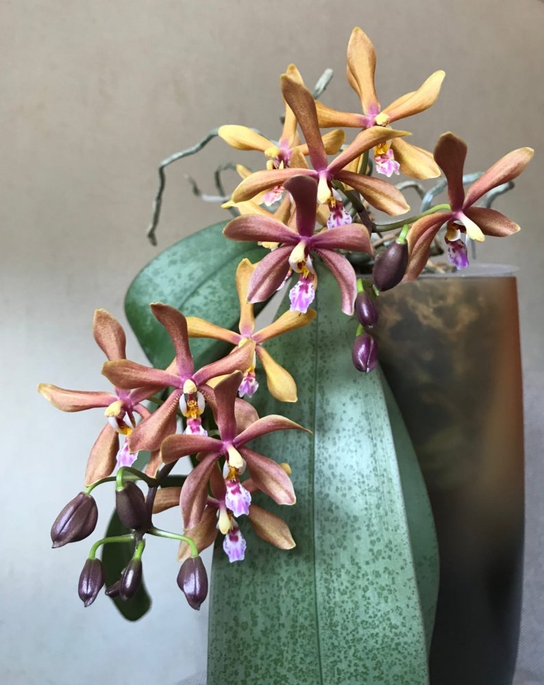 Phal Yaphon Anmino Yellow bat ES'AN-6605 получала в январе 2020 г. в размере 1,7 порадовал тремя цветочками🥰 При роспуске аромат напоминал запах сигарет, но затем порадовал и исправил на вкусный фруктово-цветочный🥰 Его цветению уже месяц!!!