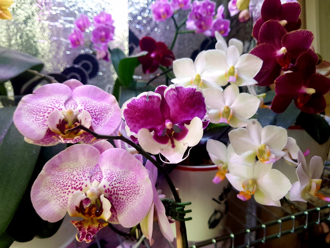 phal. Sogo Vivien, phal. Hatuyuki, phal. Saul's Fragrancy, phal. Yelloy chocolate, phal. Santa Claus, phal. Sogo Diamond, phal. Sweet Yupi, phal. I-Hsin Spot Leopard
