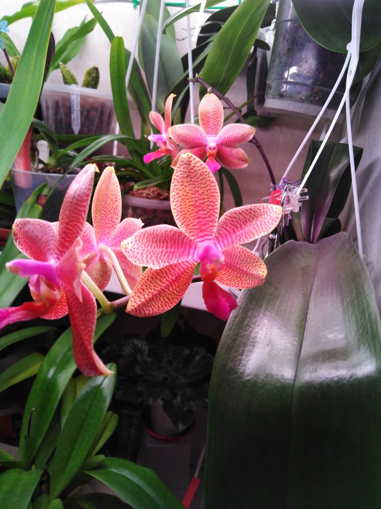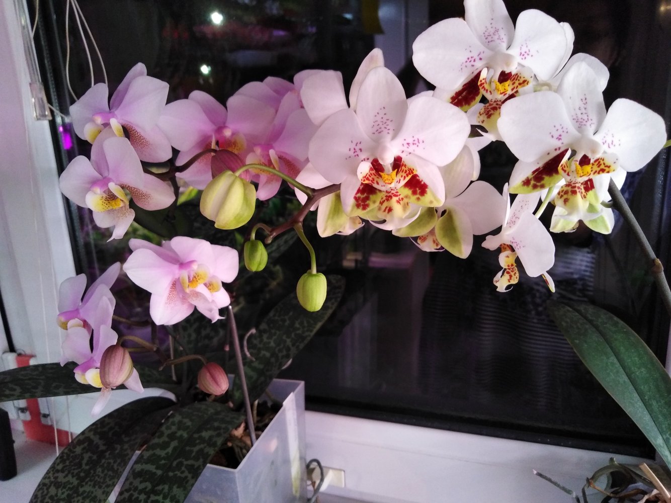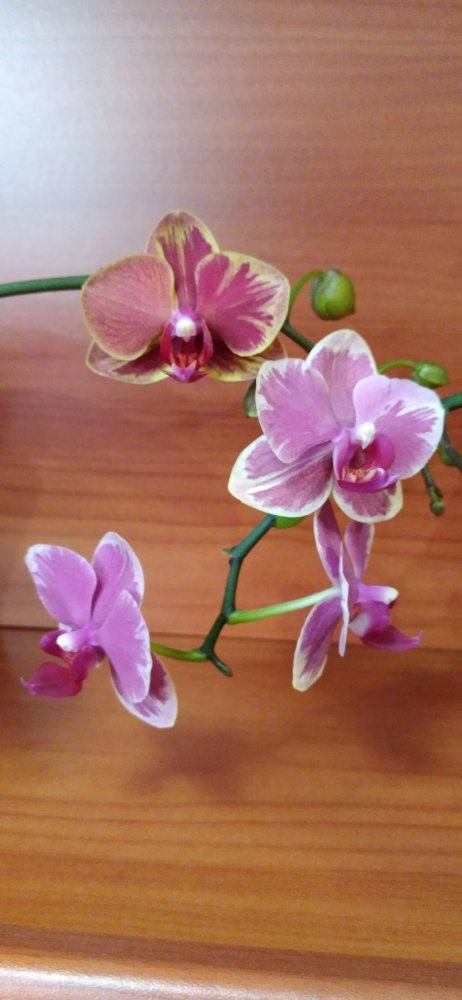 У меня есть т.н "азиатская интрига" - Fragmei Sweet- на фото давно цветущие и уже изменившие окрас три нижних цветка, а верхний цветок от нового растения, полученного от Passiflora, заявленный Fuller gold stripe.с телефона 108.jpg