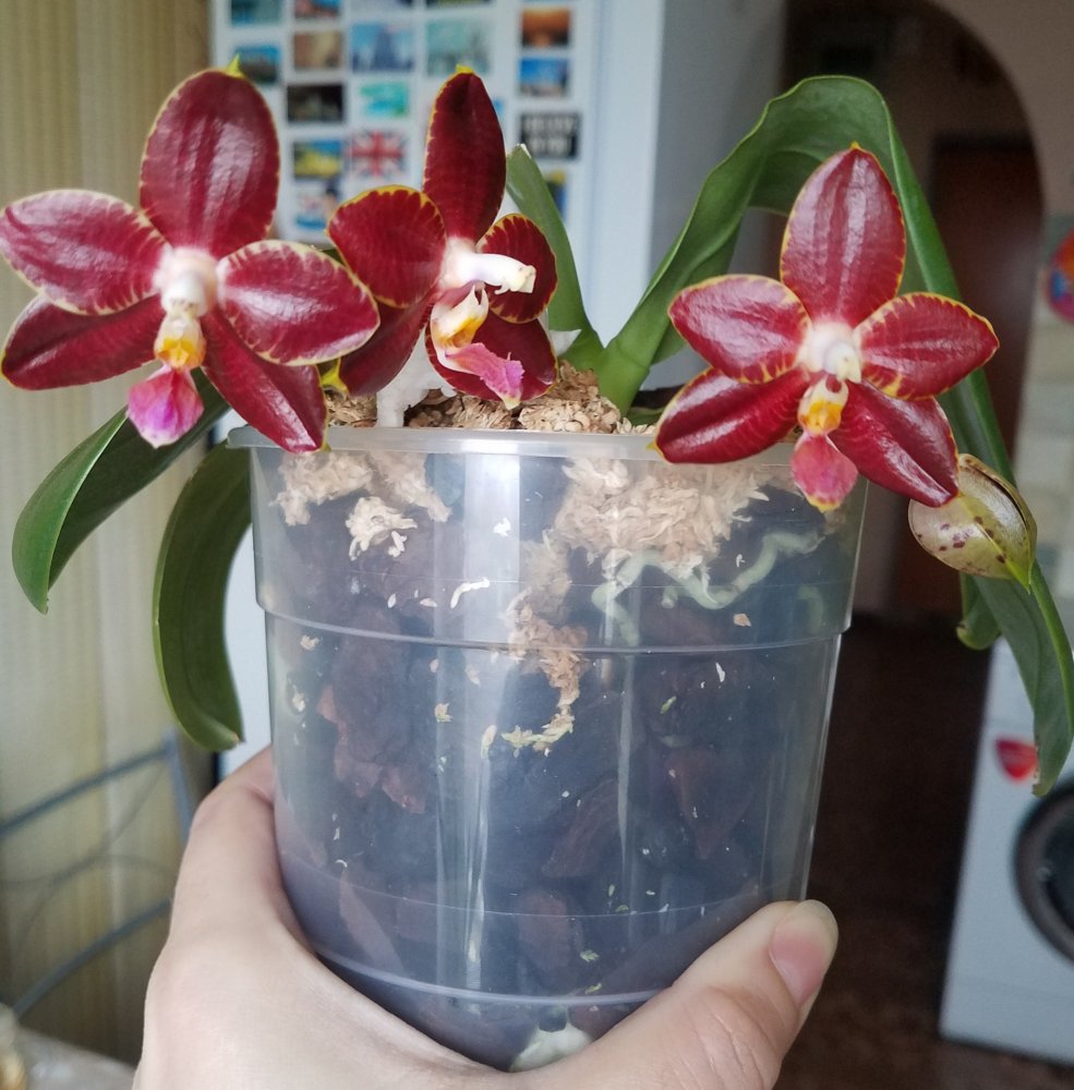 Chiloschista lunifera и phalaenopsis GW Green World.