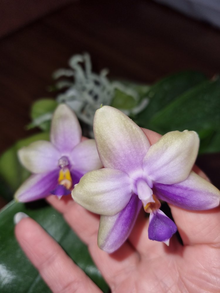 4. P. violacea blue x Penang violacea. Яфон. На солнце вкусно пахнет. Выгнутый. Тоже немножко с зеленцой. Может в следующие цветения "дозреет")))