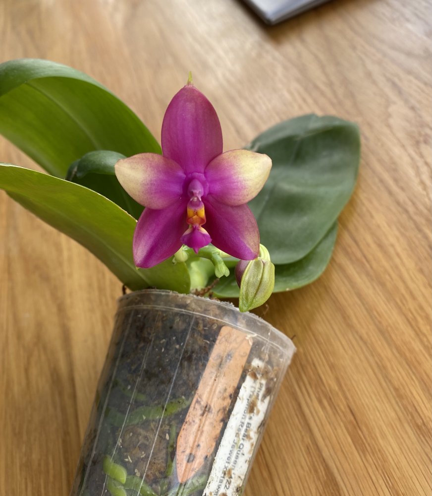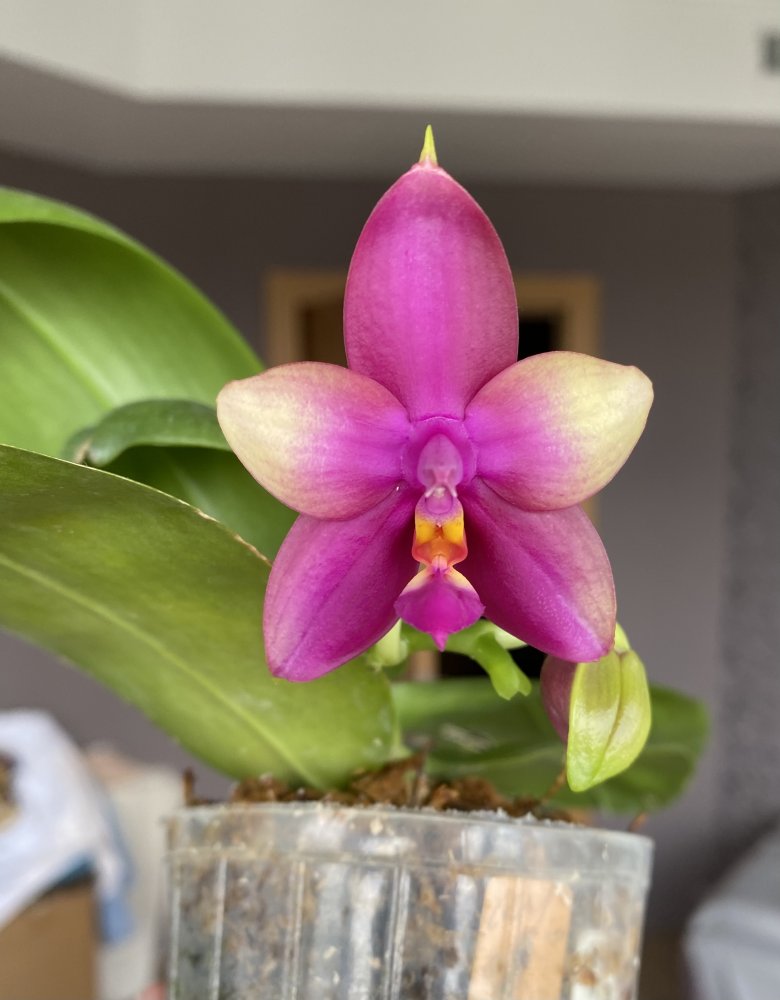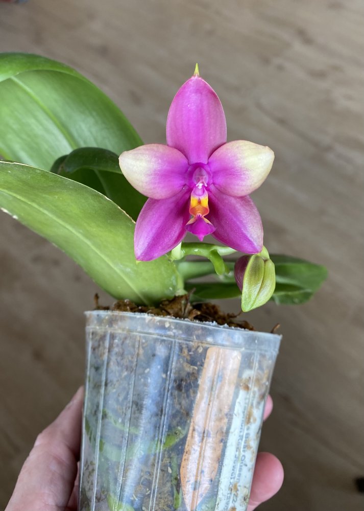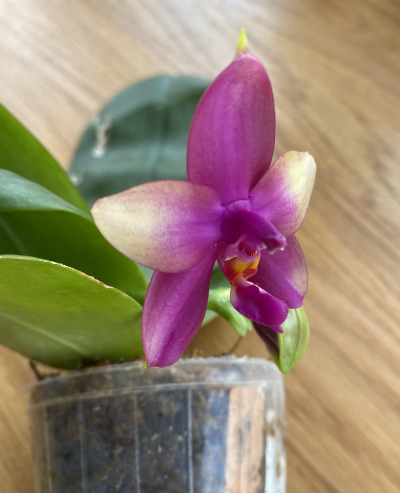 P.I-Hsin Cherry Bomb.Брала из наличия в сентябре,у меня отрастил два больших верхних листа,и потом решился процвести.