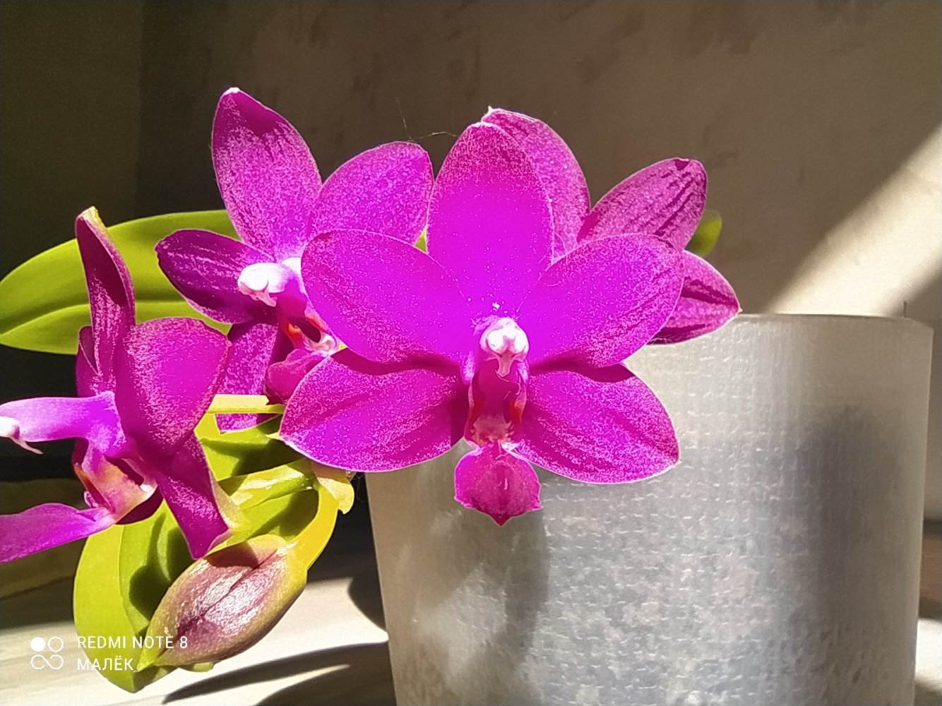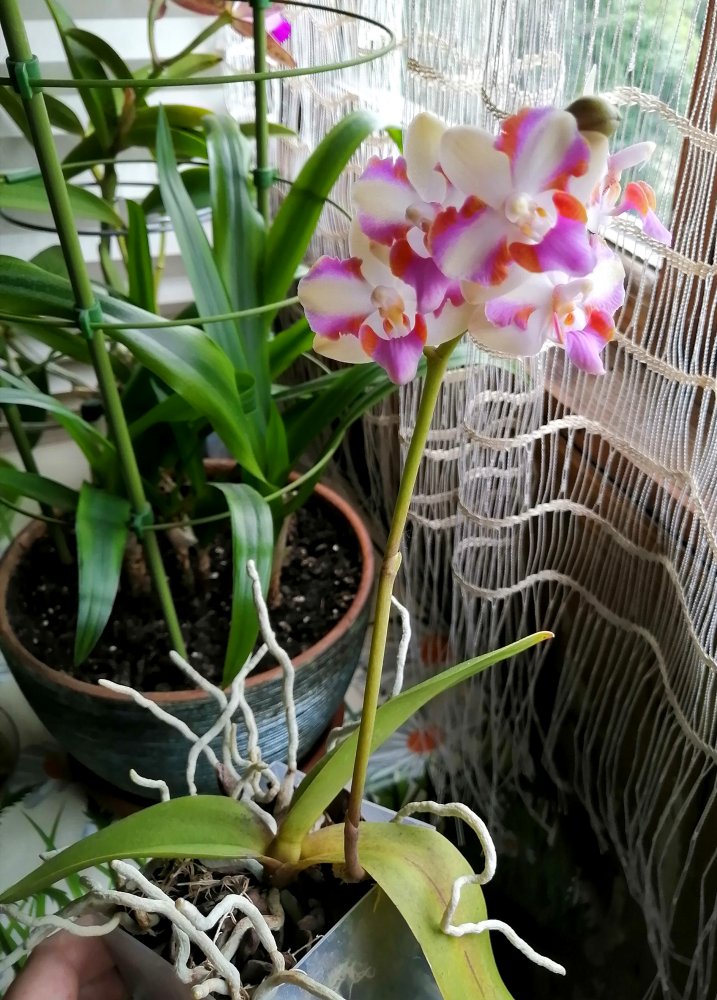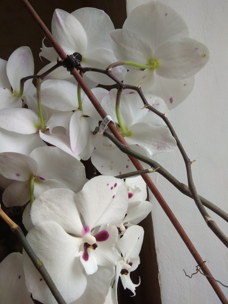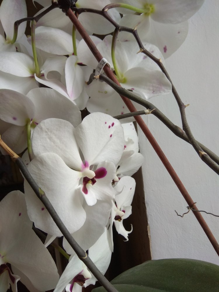 ОДИН из цветоносов Phal. Cleopatra с трёх сторон,- одним снимком не получилось!!!