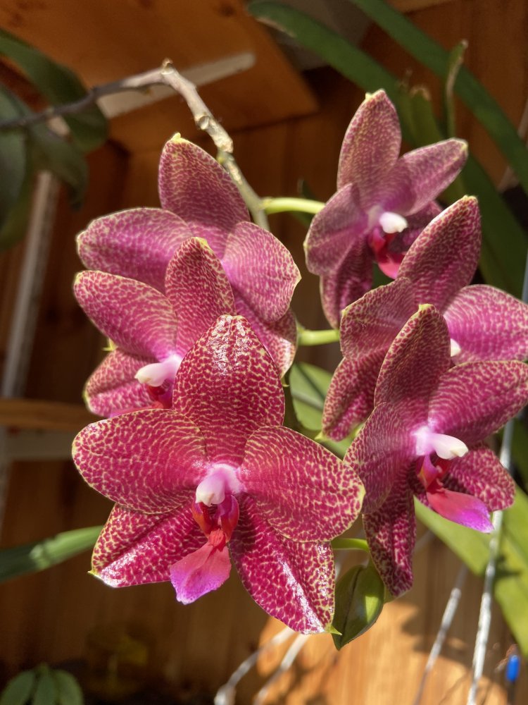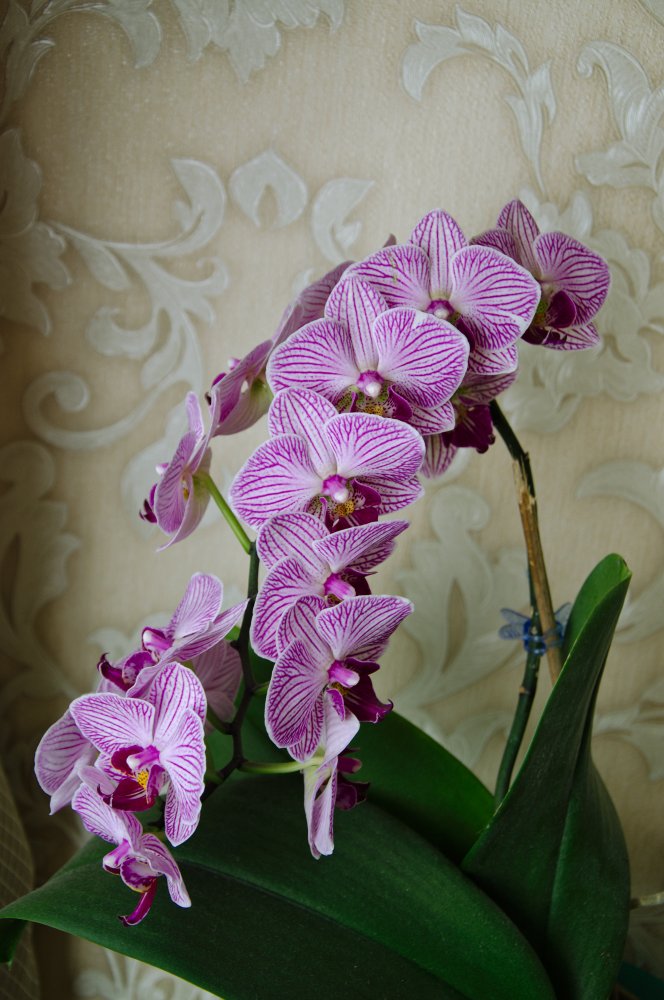 Классный сорт, хоть и "простой"Мой подарок Phalaenopsis Sogo Vivien от Passiflora.ru, выиграла эту красоту в конкурсе год назад. В декабре зацвёл, а в январе кошки его уронили и сломали цветонос.Сейчас снова цвести готовится.