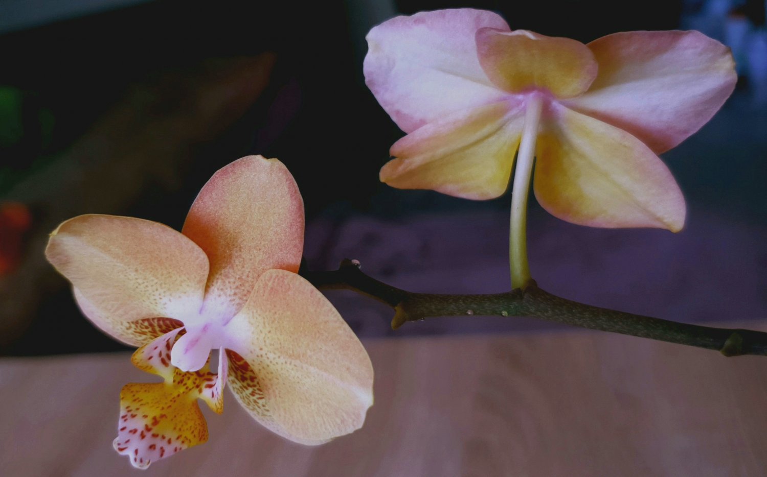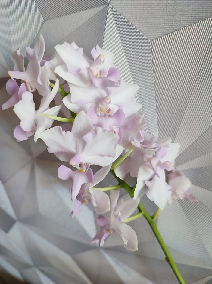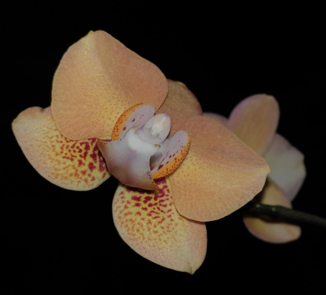 Со вспышкой более правильно основной цвет, на последнем фото, без вспышки, поймала лёгкую розовинку на колонке и обратной стороне цветка. Очень красивые переходы цвета. Цветёт долго, под конец цветения выцветает почти до палевого.Имхо Pulcherima стоит снять на темном однотонном фоне чтобы подчеркнуть нежный цвет и фактуру, на этом несколько теряется. Цветение очень красиво.Onc. Mariposa alba https://passiflora.ru/product_info.php/products_id/259069 получен три года назад, первое цветение. 2 цветочка. Рядом Pulcherima.