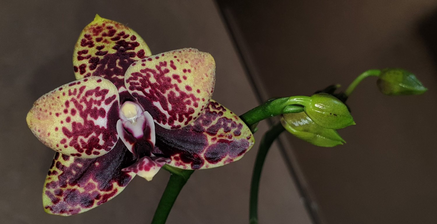 Хоть и пересорт, но красавец! Ожидался Leopard Prince Golden Leopard, а цветёт уже второй раз Sogo Diamond. Окрас не изменяется на цветке, всегда чёткое расположение крапа. Цветок около 7см, аромата нет. Зацвел в очередной раз Yaphon Perfume Coffee. Цветы очень насыщенного окраса в этот раз, прям кирпично-бордовый, потом рыжики будут. Конечно очень ароматный. Цветочки 3-3.5см.