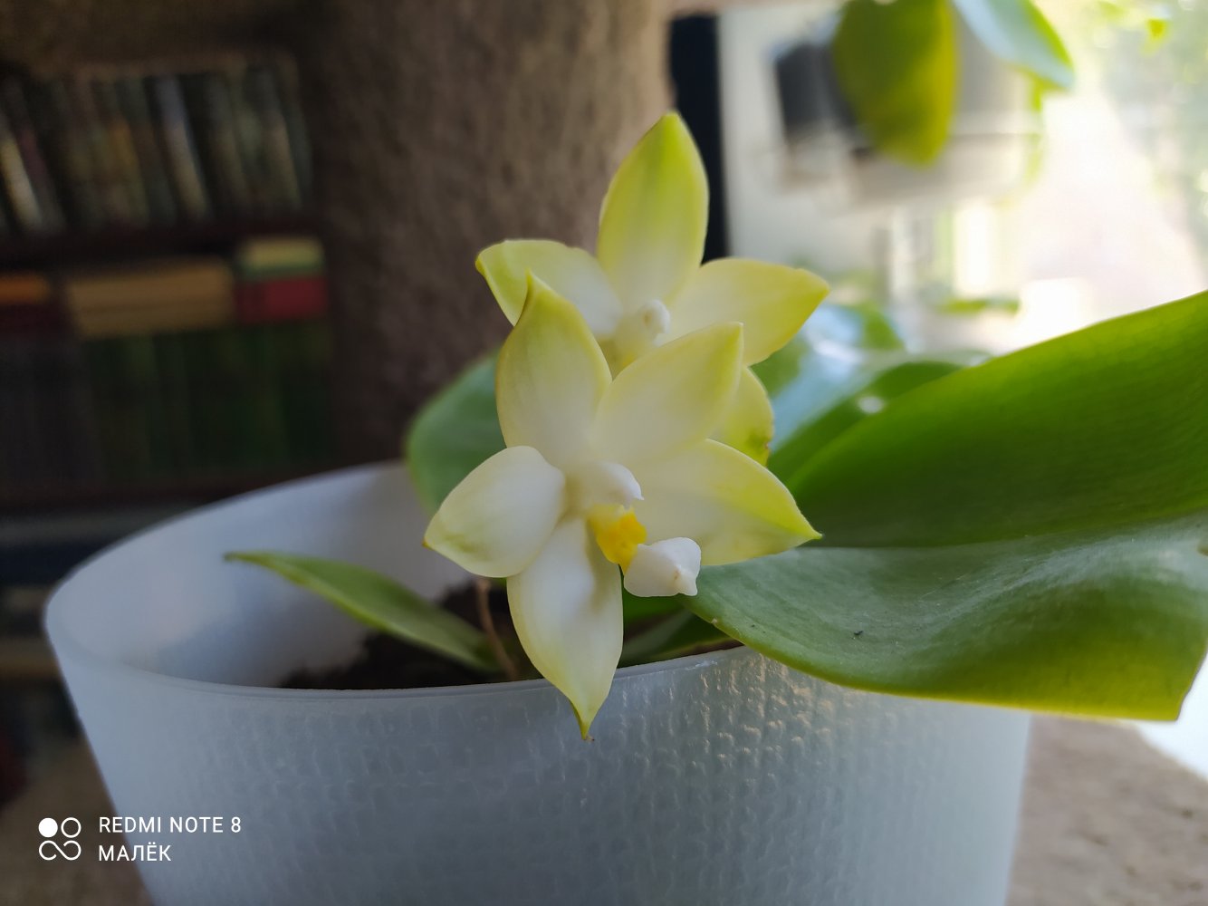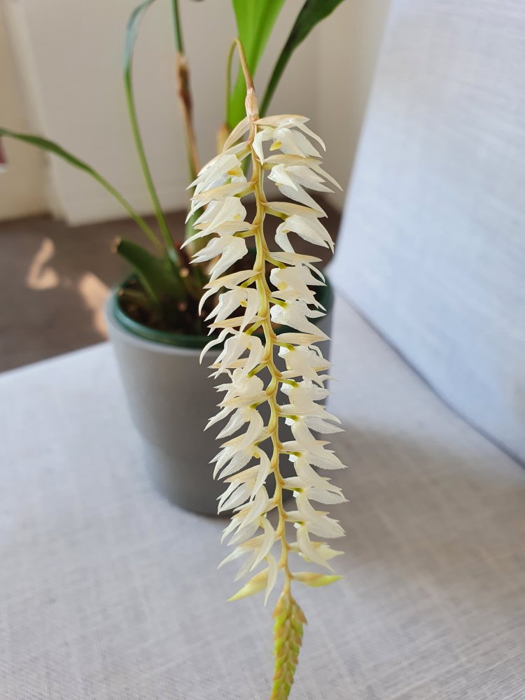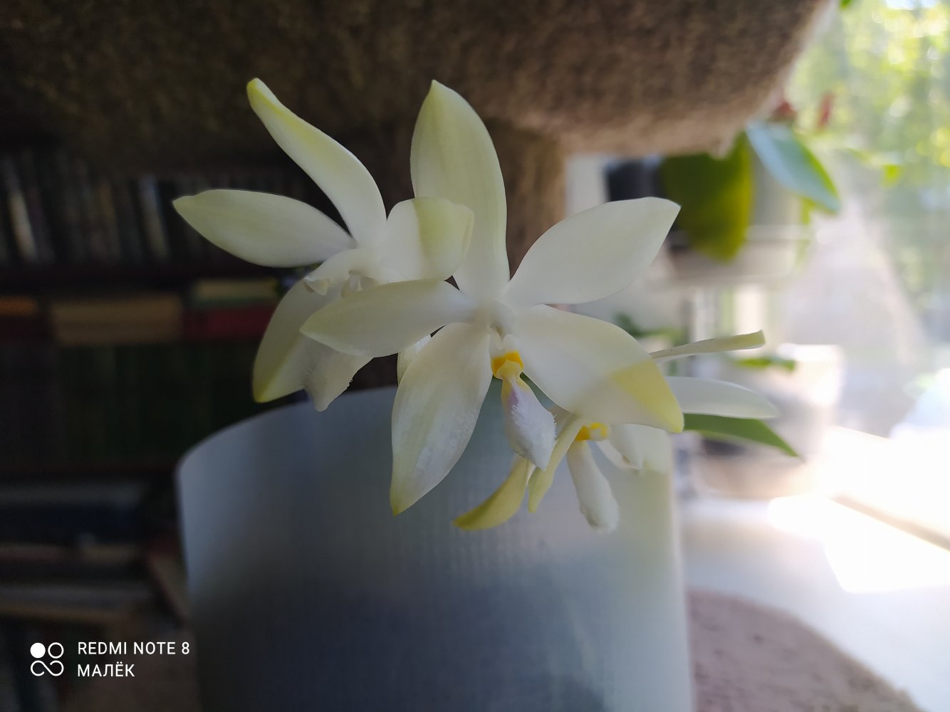 Brassocatanthe Jairak Finch, распустила два цветочка. А я и не видела, что бутоны были, случайно обнаружила!20210822_161018.jpgрастет у меня в групповой посадке, на коряжке