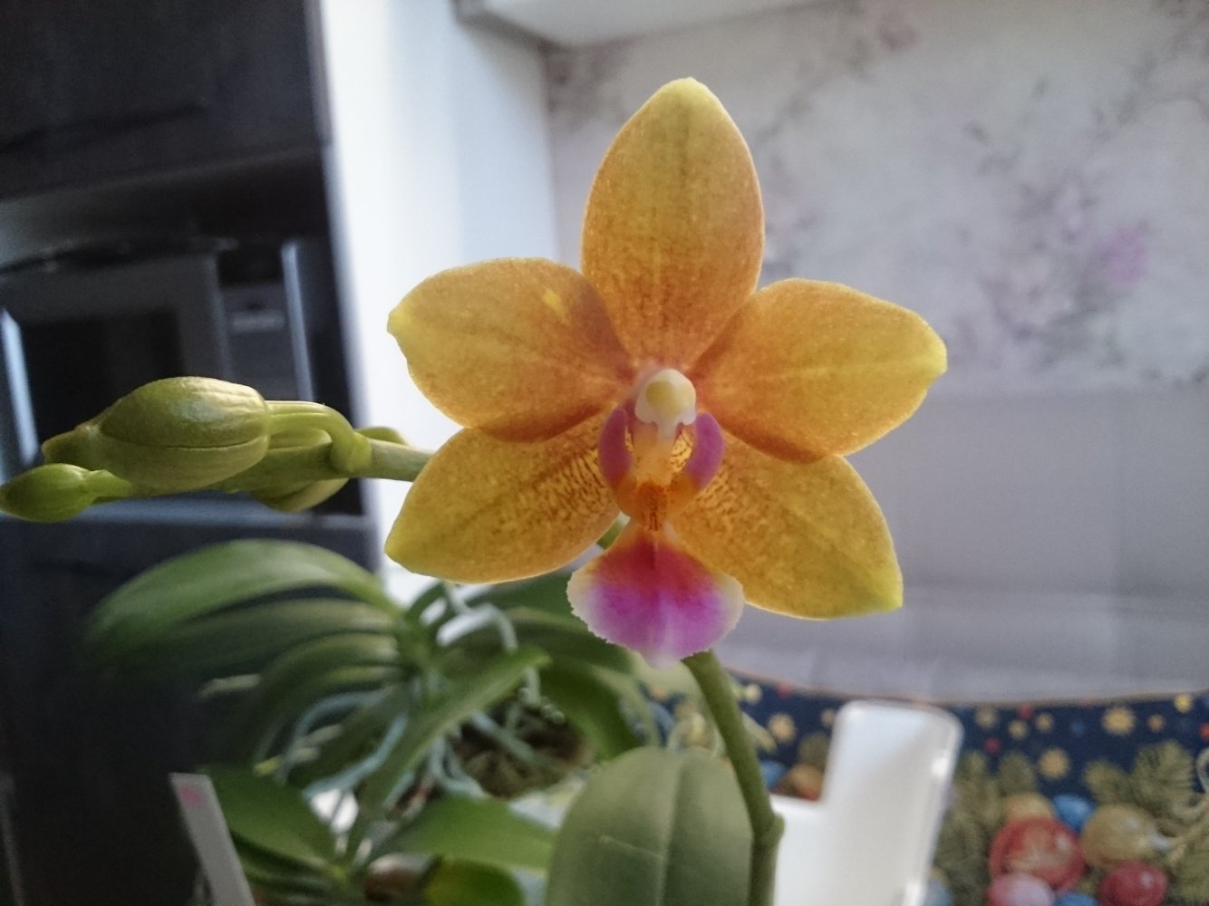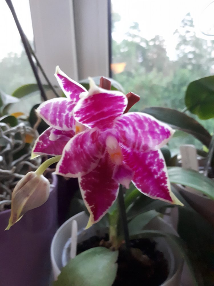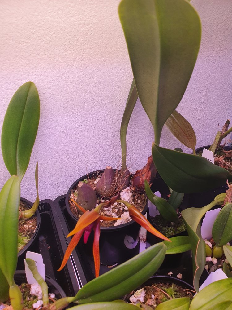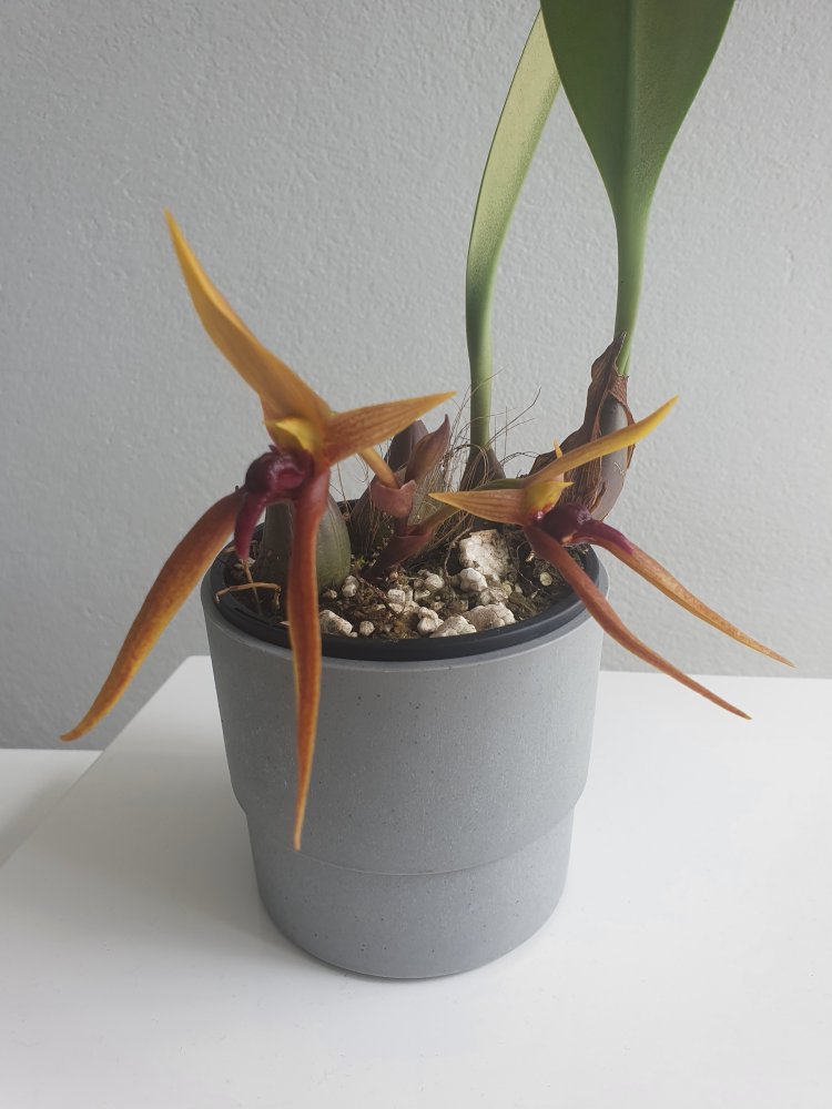 Уточнение: это оказался пересорт. Правильное название этого чуда Bulbophyllum trigonosepalum, и он из группы nymphopolitanum. Филиппинский эндемик. Полностью раскрытый цветок в размере 10 см, губа подвижная, сепалии толстые мясистые.У меня новая радость, Bulbophyllum orthoglossum зацвел, плюс раскрывает второй бутон и продолжает растить стрелку вверх. Воняет какашками, но не сильно, только если нос прямо в него засунуть. Это скорее как развлечение, а так запах никому не мешает, в отличие от dendrochilum irigenze который вонял на весь дом горелыми покрышками и машинным масломЦветок у этого экземпляра получился крупный, больше 8 см.