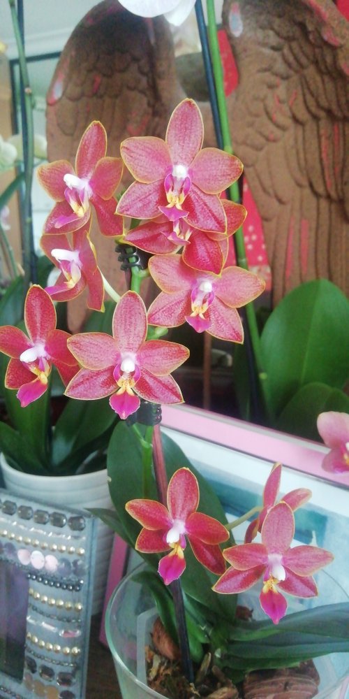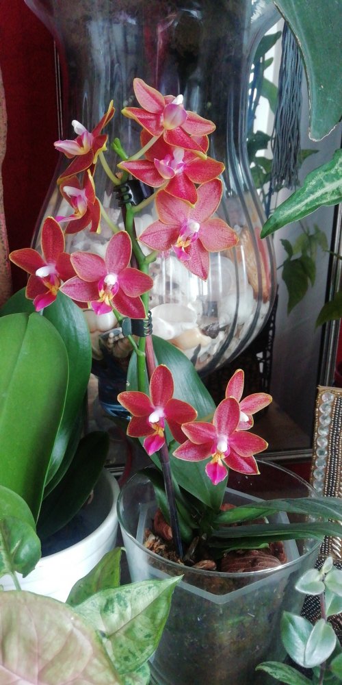 A compact Phalaenopsis that stands about 20 inches tall measured from the bottom of the pot to the top of the flower...www.orchidweb.com