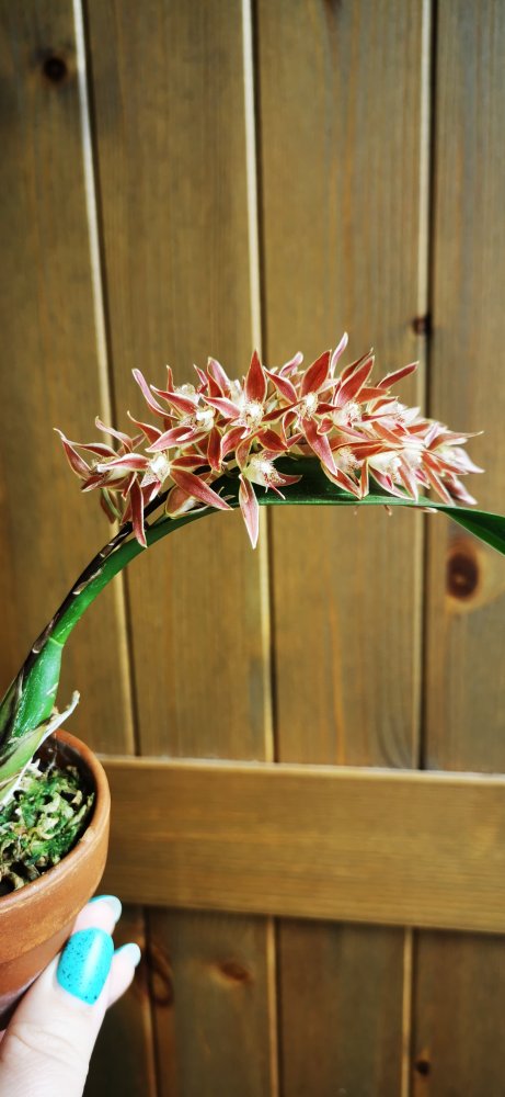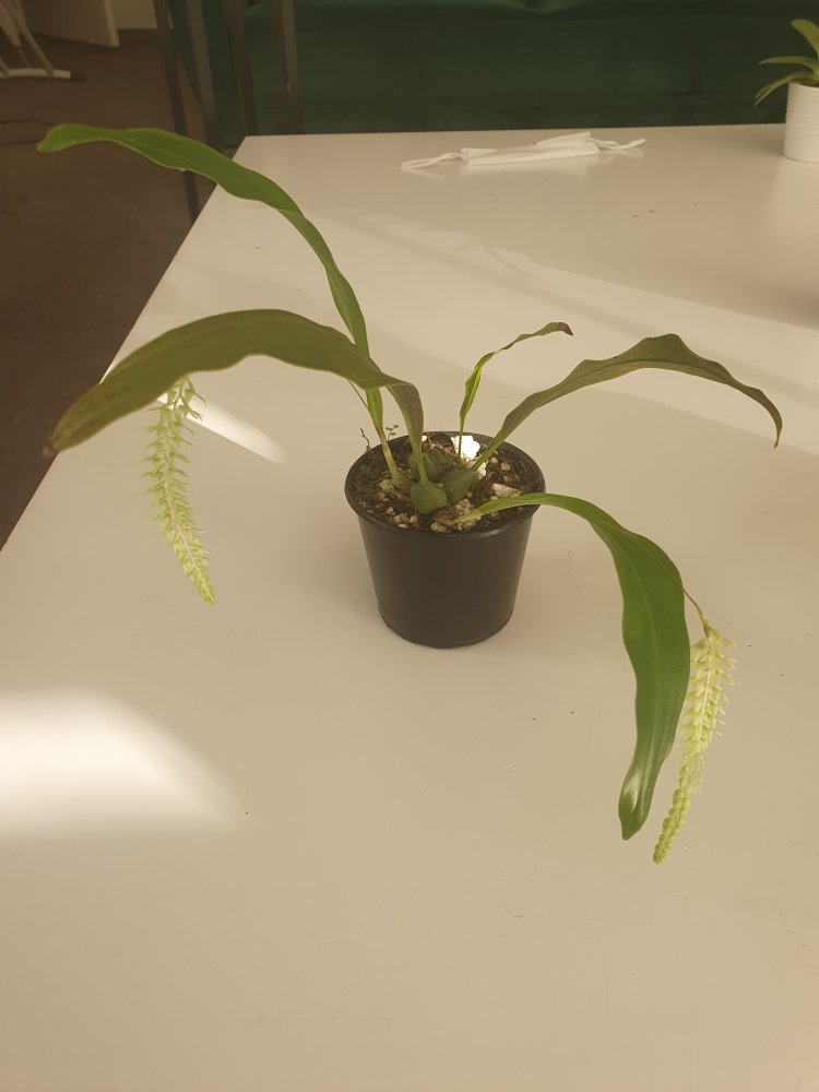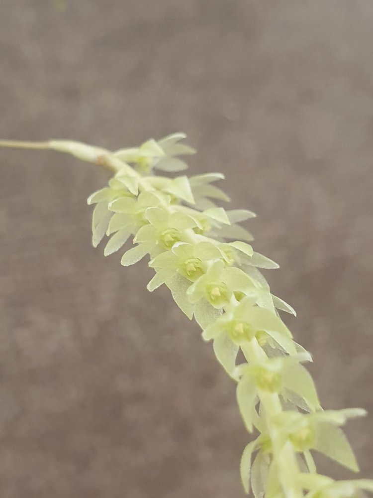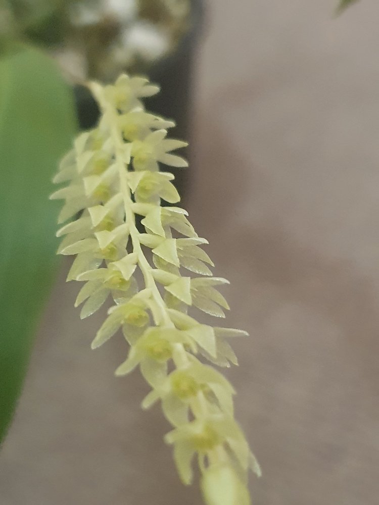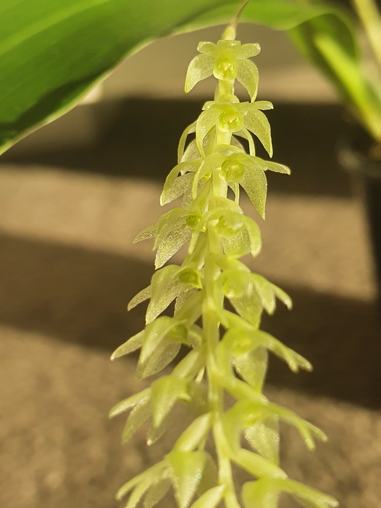 Dendrochilum geigeri. Ярко-зеленый дендрокайлум из Минданао, ближайший родственник diabloviride. Многие ботаники считают их синонимами, однако Jim Cootes их разделяет в разные виды. Вживую цветы более насыщенного зелёного цвета чем кажутся на фото. Я все же подозреваю что это может быть не geigeri а ещё один diabloviride, потому что у него листья гладкие а не бархатистые.