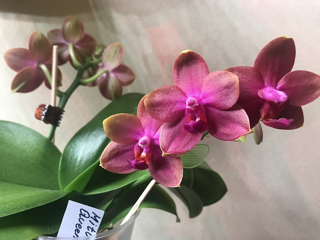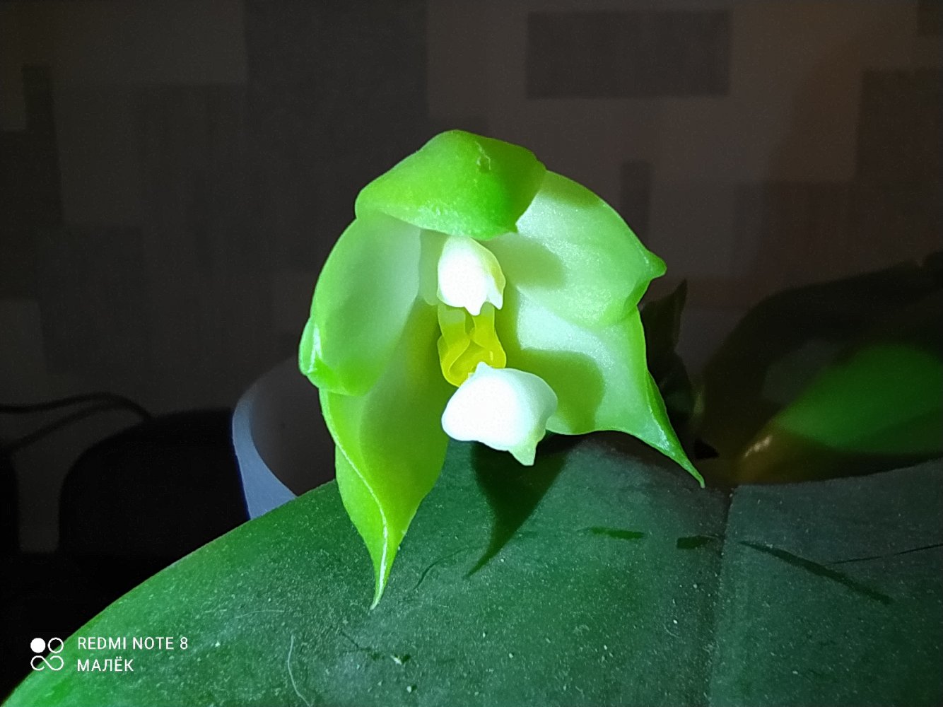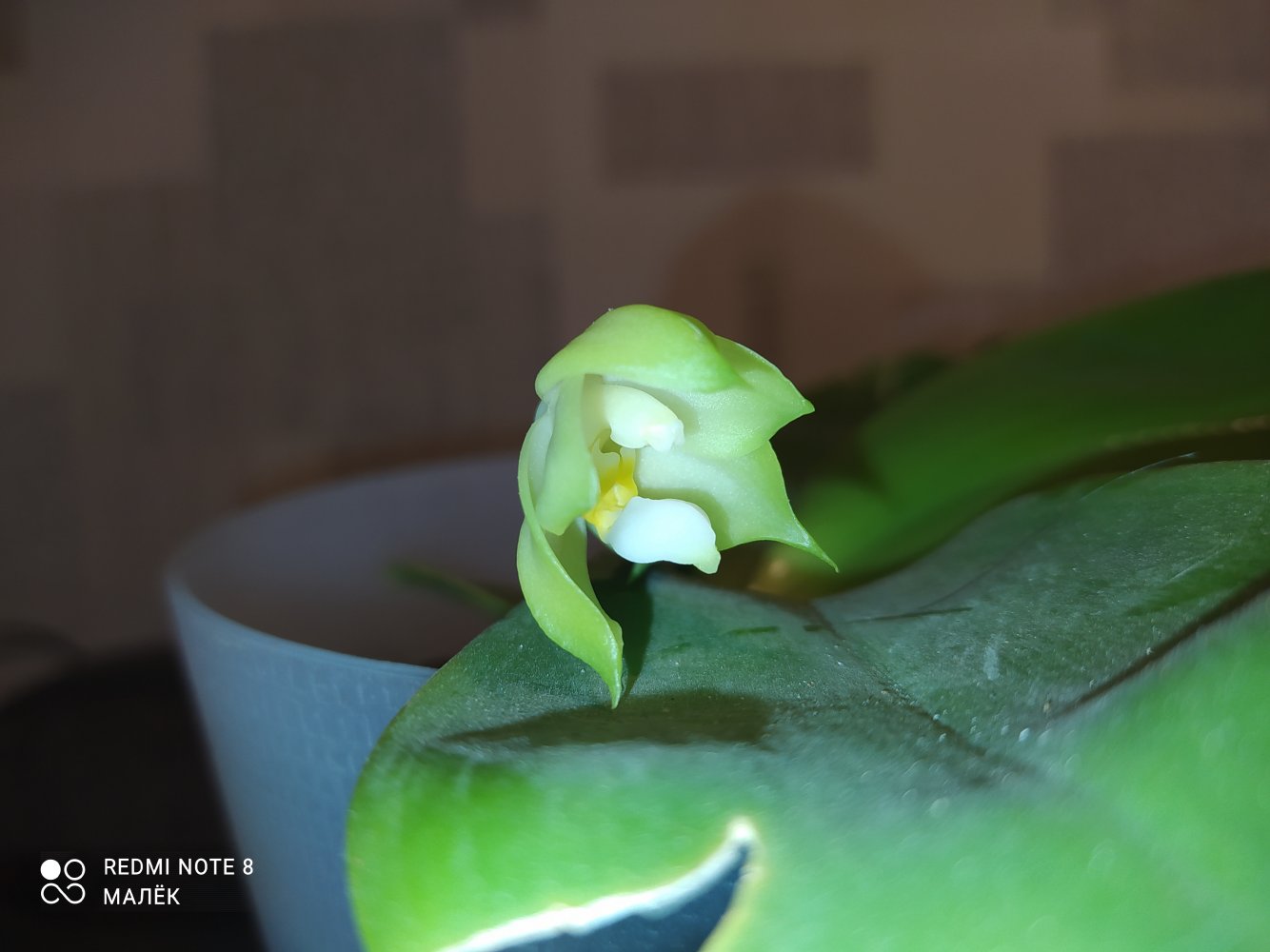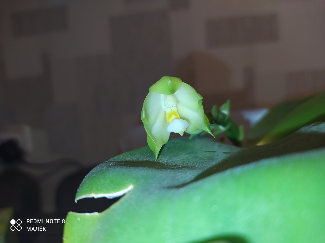 2.Phal. silberqure x hanhenensis. Тоже первый бутончик распустился, маленький, глянцевый, должен быть многоцветковым: