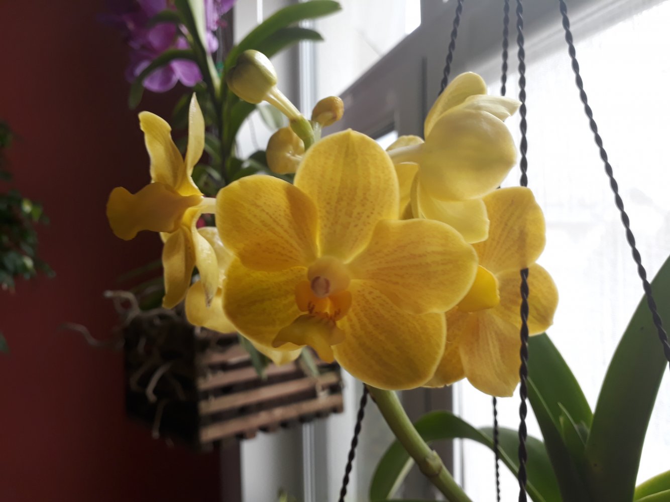 Еще ванды:20210926_162633.jpgV. Fuchs Gold× v. Denisoniana. Получена от Пачары, год назад. Первое цветение, по сорту. Радует то, из-за чего заказала-токий цитрусовый денсониановский аромат! Так бы и стояла, нюхала ее весь день!