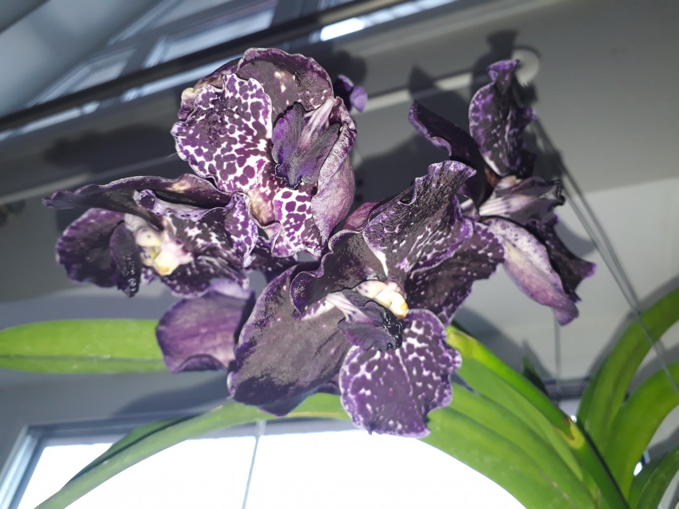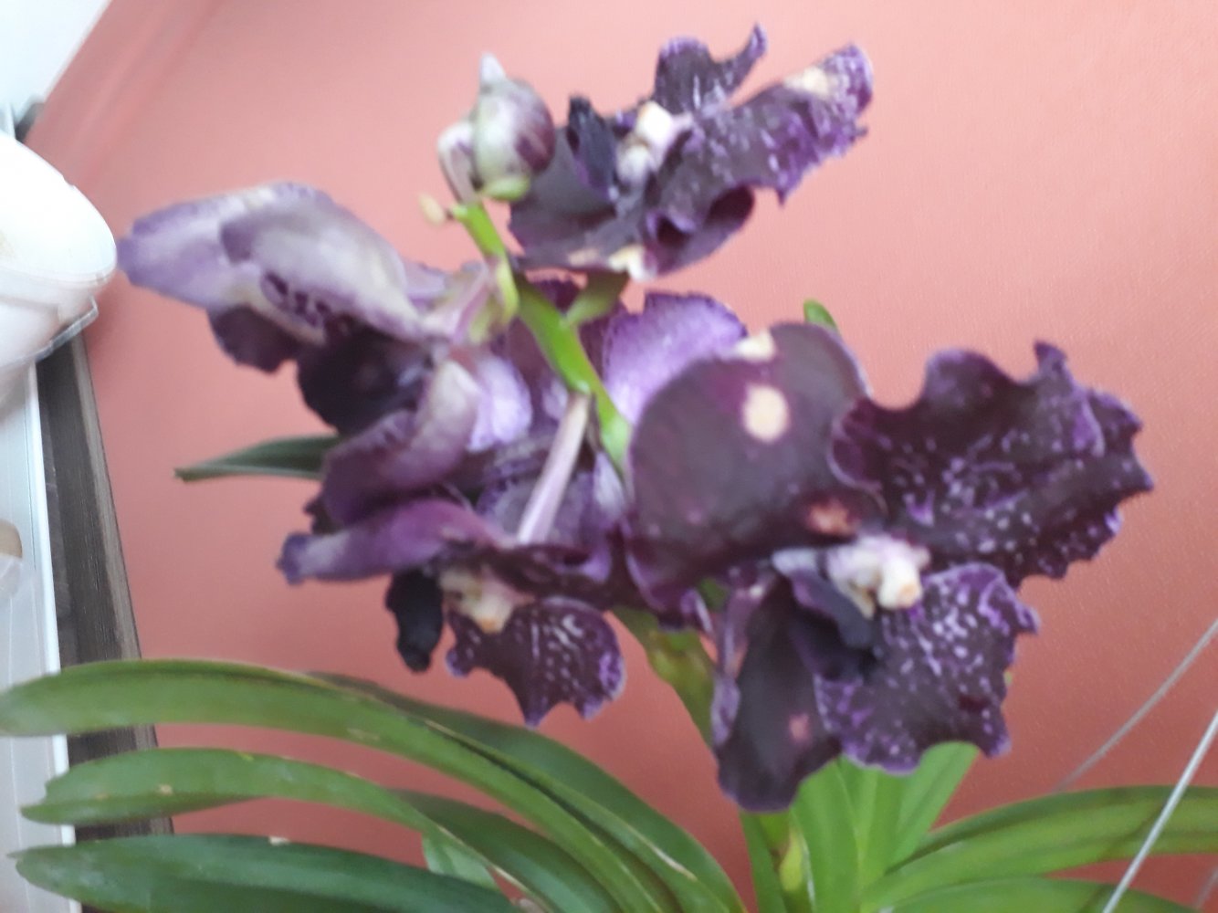 V. Somsri Blue Classic × v. Delight Black,тоже первое цветение. Как не старалась сфотографировать, не передается ни ее восхитительный цвет-глубокий , бархатно-чернильный, ни прекрасные, рюшестые края лепестков.