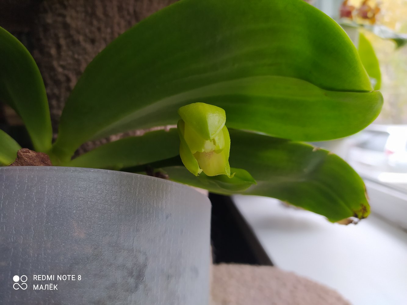 4. Phal. Lyndon Gold Ring. Какой-то нестандартный зеленый цветочек получился. Рядом его брат с этого же куста для сравнения😊