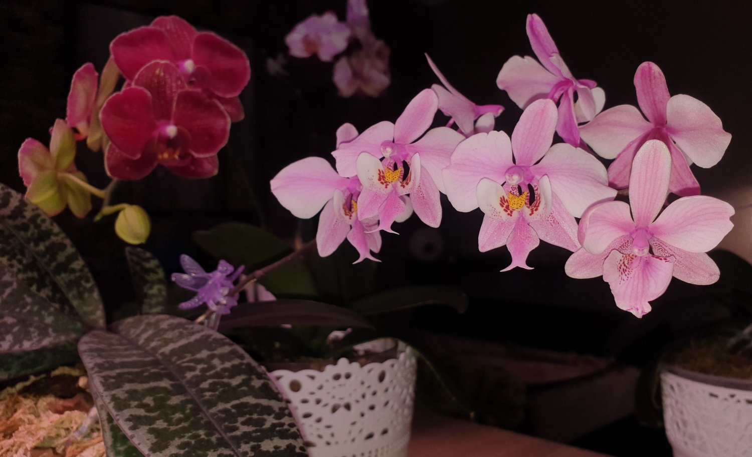 Cattlianthe Tristar Bouquet Ei-Chuan-Hong, первый раз цветёт с двух цветоносов, Всего распустилось 13 бутонов, слабый запах сирени.
