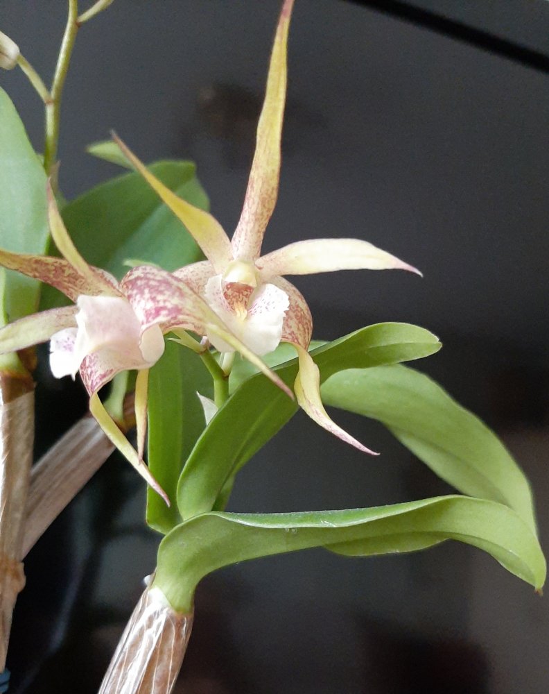 Раскрыл первые бутоны австралийский дендробиум, гибрид Den. Regal Gillieston 'SVO' x Den. Warrior 'Jordan' от SVO. Цвет как мне кажется ещё не набрал, жду жёлтого. Цветок 4 см, лёгкий аромат гиацинта