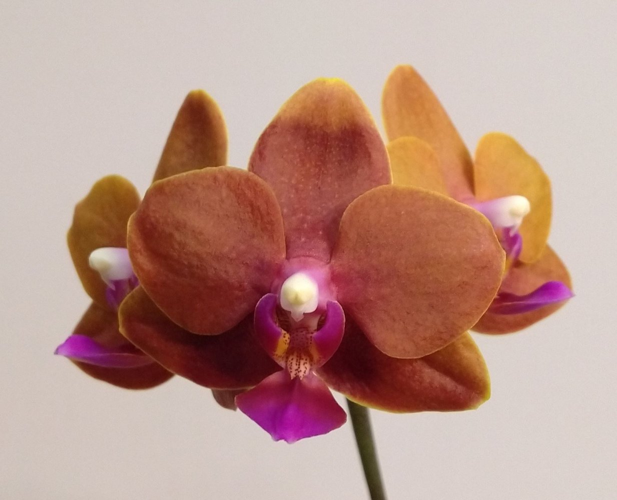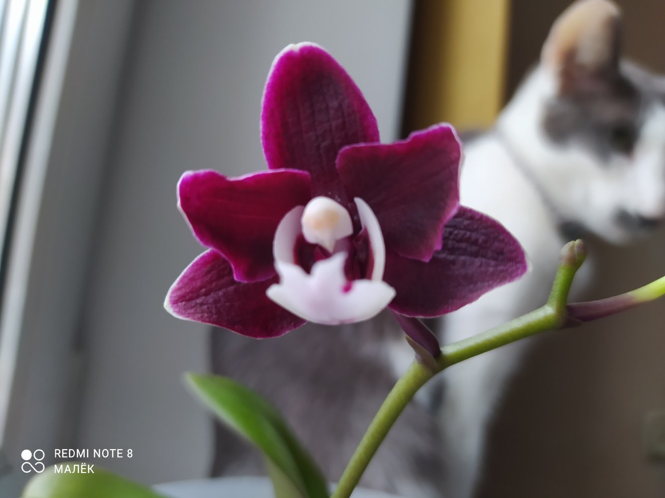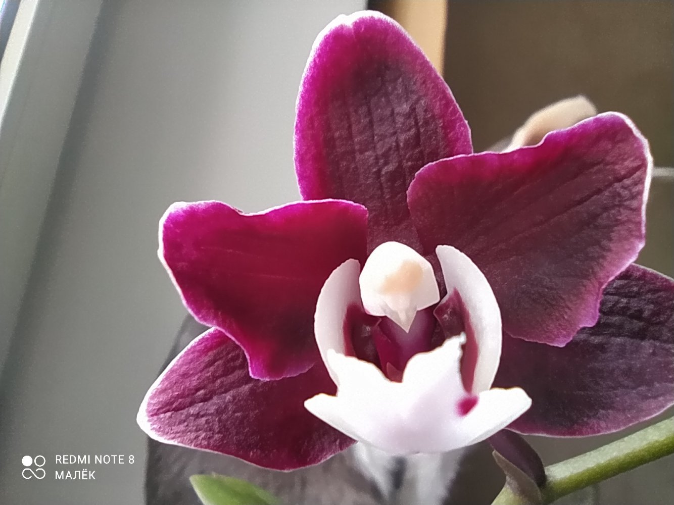 P. Mituo Golden Tiger "White Tiger", получен из спеца меньше двух лет назад очень не крупным молодым растением. В горшке тогда был еще один, но совсем крошечный, он сразу погиб. Было вложено 2 одинаковых бирки, видимо с расчетом на второе растение (у кого получены такие же - это не прикорневая детка, это отдельное растение из одной фласки, просто не стали отделять их друг от друга). Адаптировался с переменным успехом- то отлично рос, то начинал загнивать. Листики у этого фаленопсиса тонкие и слегка волнистые. Зацвел первый раз, для меня это стало сюрпризом, поскольку растение еще очень молодое и маленькое по размеру. Очень довольна, именно то, как я себе его и представляла)).