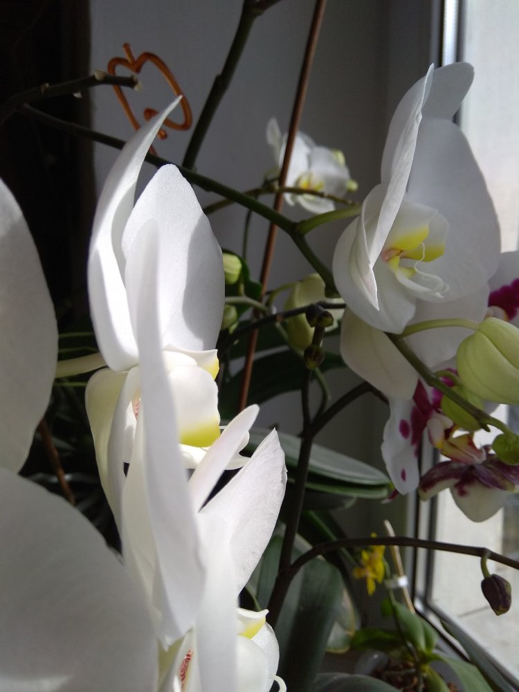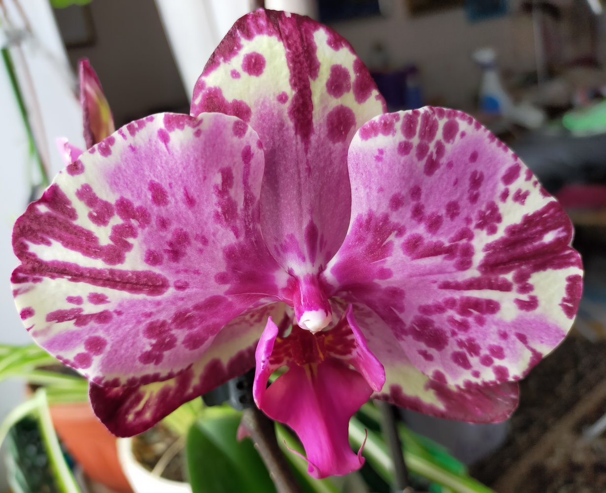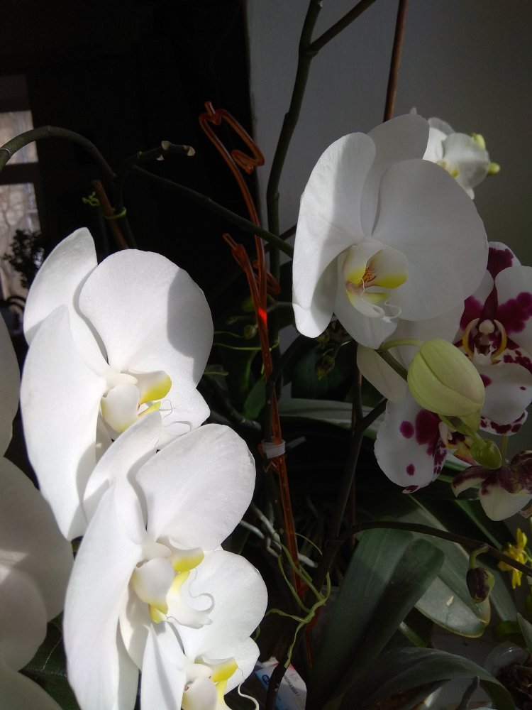 Радуют своим цветением Клеопатра, бархатная незнакомка, White Swan и еще один красавец,- я считала DTPS. JIUHBAO ANGEL, а, может, Magic? Так приятно смотреть на яркие расцветки цветов на фоне унылого пейзажа за окном!