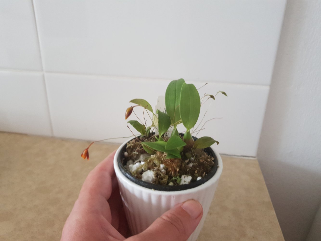 Субстрат сфагнум с пенопластом, поливаю только дистиллятом капиллярным способом (т.н. нижний полив). Освещение - матовое восточное окно в ванной.