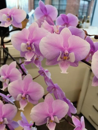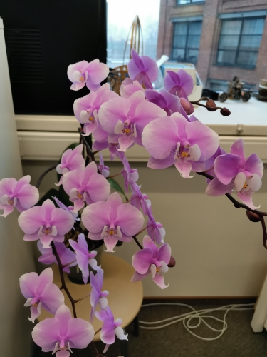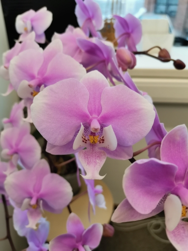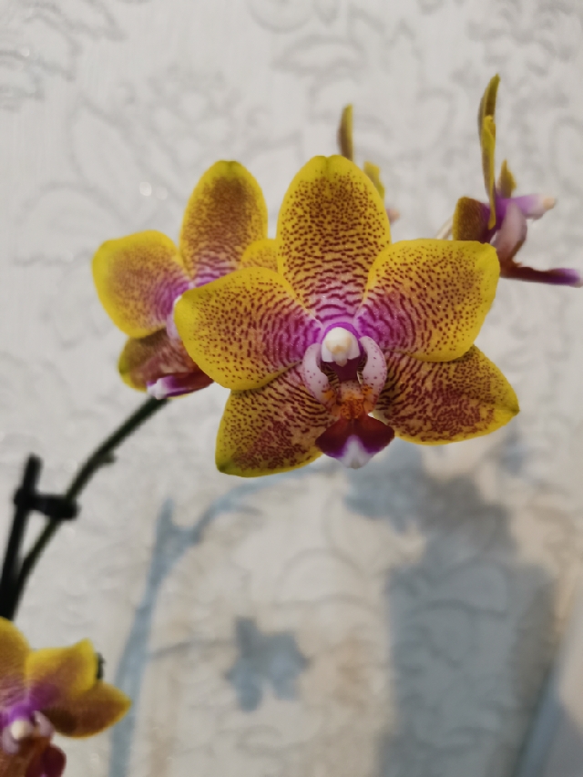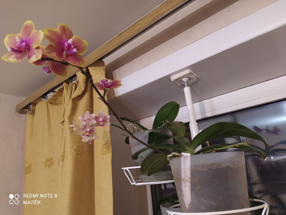 Получила летом, уже с кучей цветоносов. Старые цветоносы дорастила, ещё два новых вырастила и зацвела